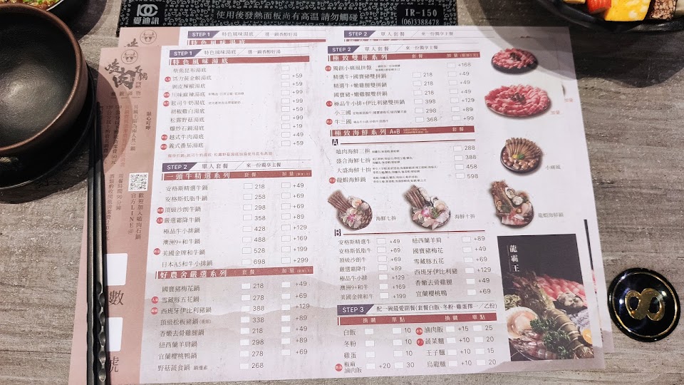 菜單沒有標示哪些肉品是“重組肉”只說重組肉需熟食,獨食者會有一瓶加湯供你使用