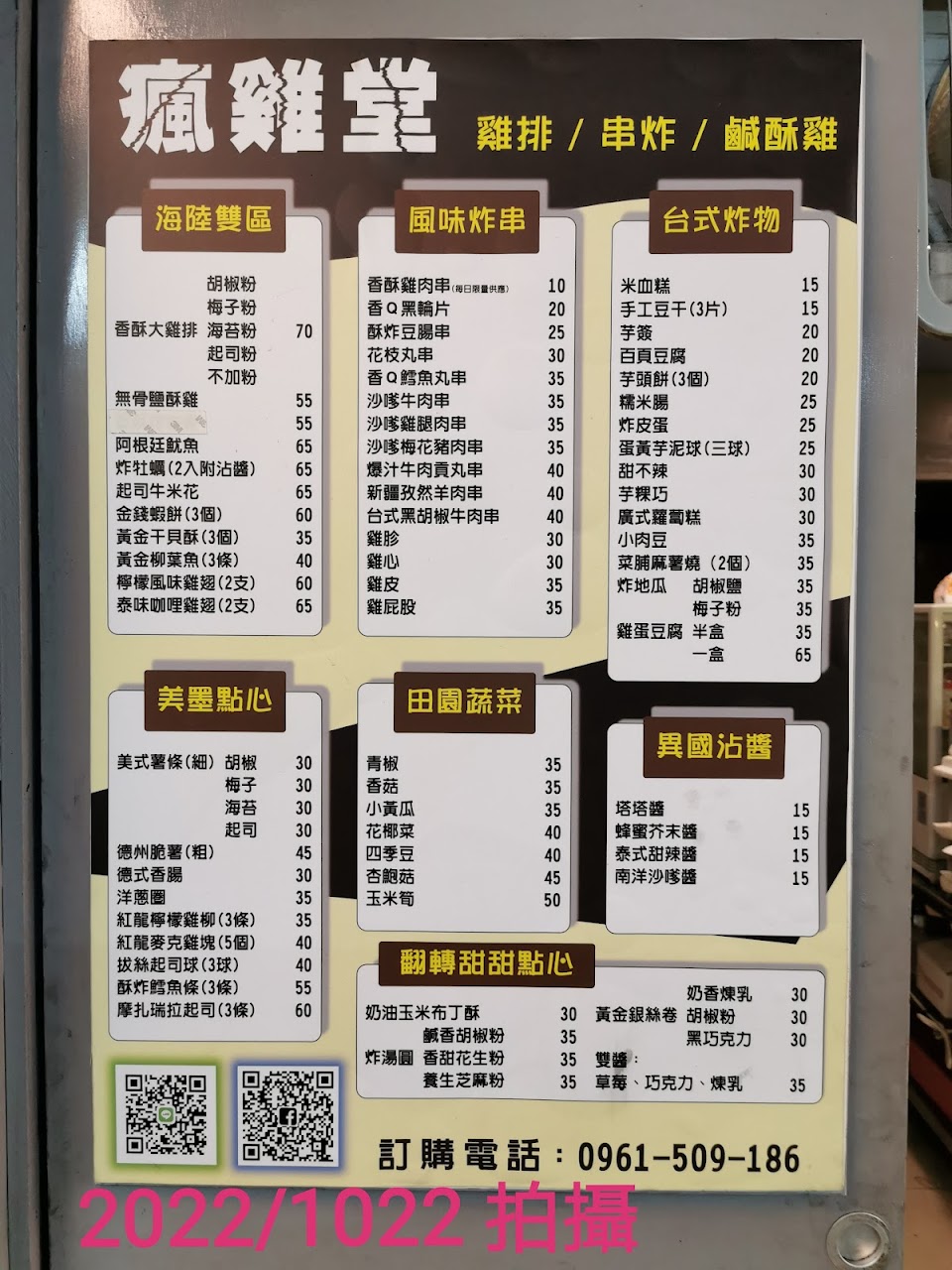 2024最新在地推薦餐廳的菜單_瘋雞堂鹹酥雞的菜單、圖片