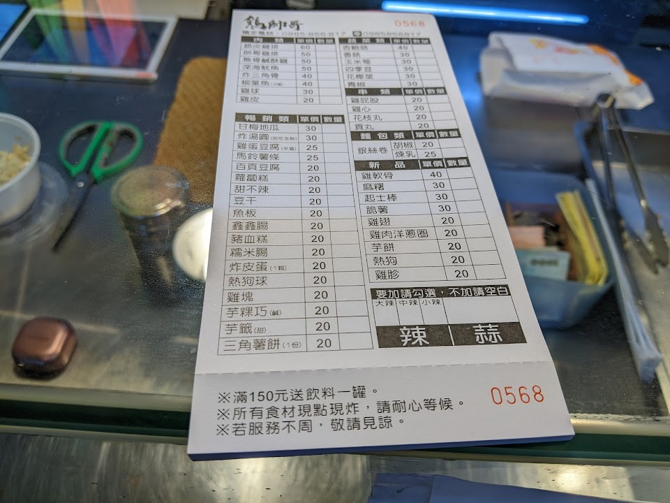 今天是第一次吃,點了鹹酥雞、魷魚、米血、蘿蔔糕、雞排。還蠻好吃的,口感酥脆、口味不錯,價格也還算合理,沒吃過得都應該試試看。我也會持續回購的。