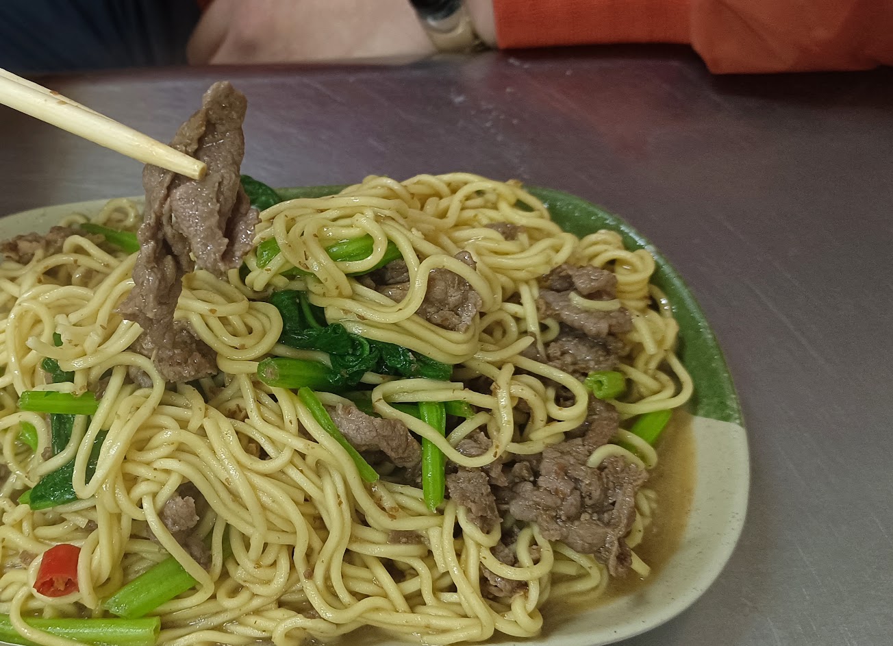 牛肉切得比較薄加上烹煮吃起來就比較硬跟柴,但口味不錯不會太鹹,吃起來順口,炒麵點大份的份量十足。