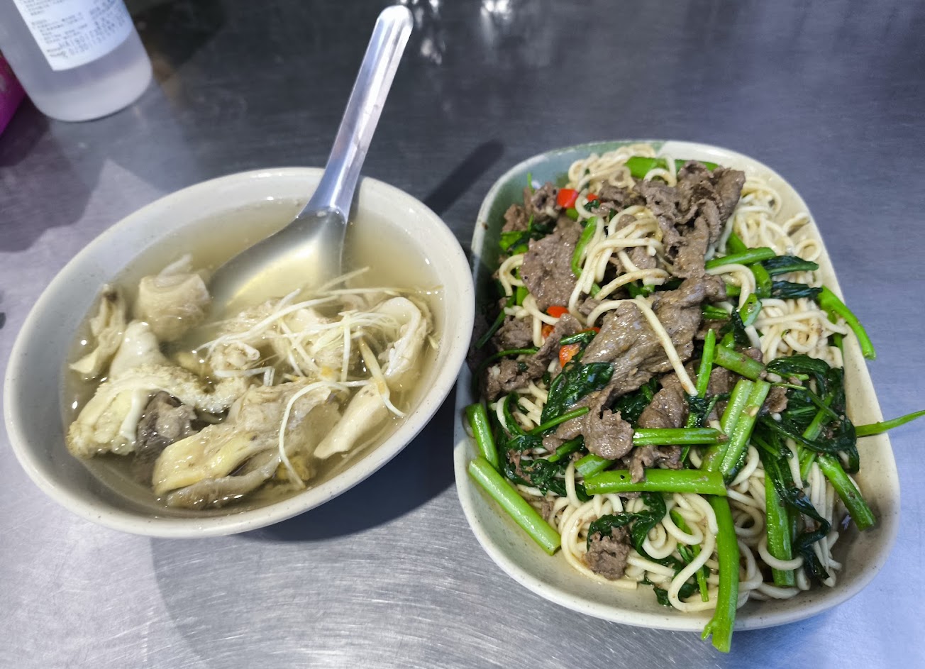 牛肉麵其實是牛肉炒麵,份量很多,牛雜湯份量多也很好喝