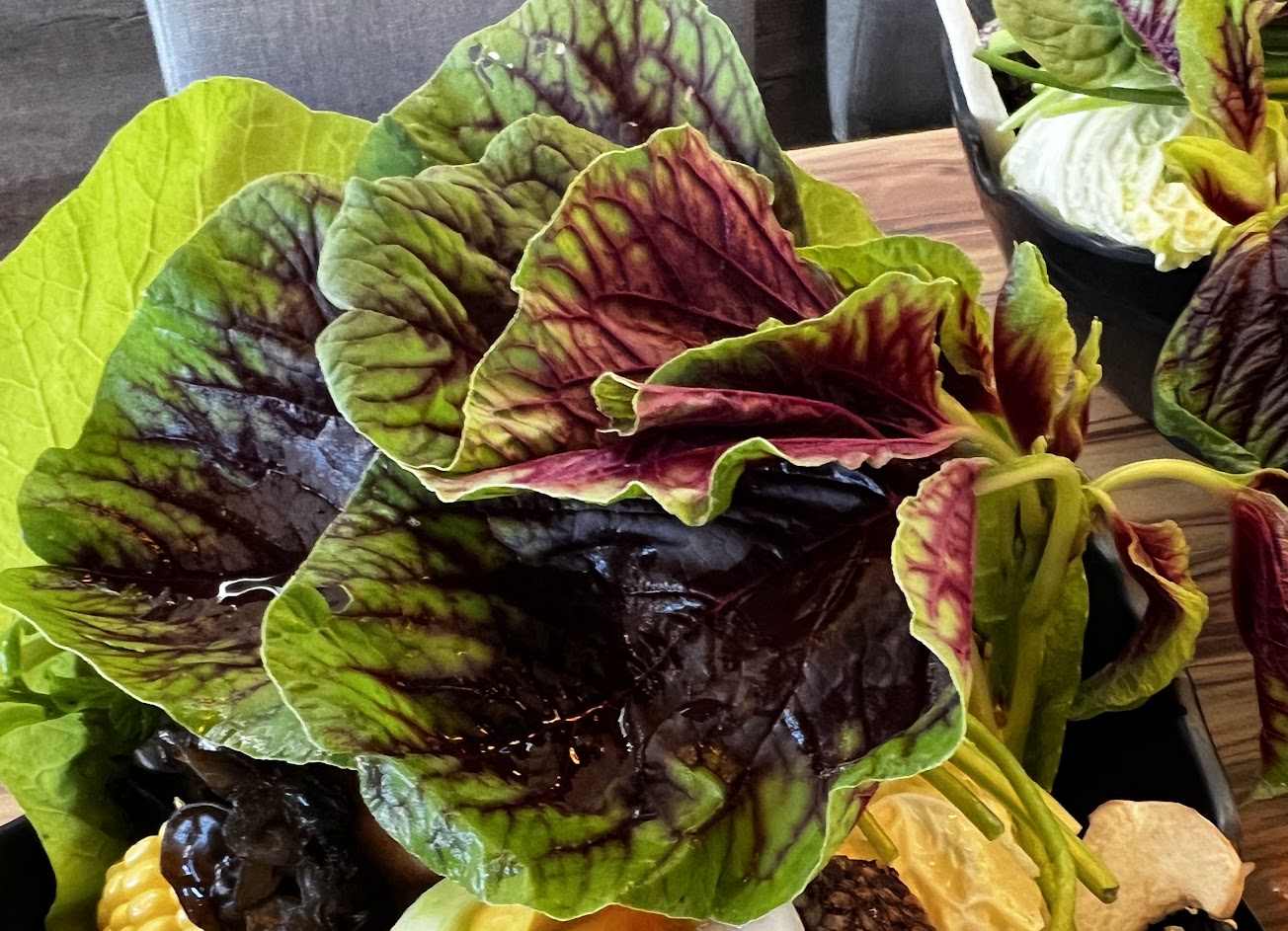 有蔬菜吧,種類很多,還有難得一見的水蓮和茼蒿,石頭火鍋會用自己的肉下去炒,湯蠻輕甜的,肉也給的實在,整體不論是餐桌或是洗手間都很乾淨,會再來訪!