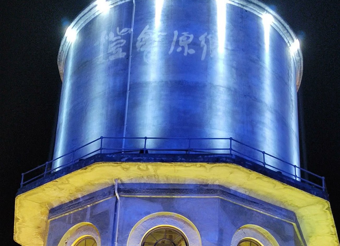 20220812第一次全家人一起造訪北港,飯後散步走往「北港水道頭文化園區」,對於很少夜晚還在外面閒晃的我們感覺好新奇,園區內的燈光不是太明亮走起來也要小心,不過那高高聳立在眼前的水塔(北港遊客中心也是縣定古蹟-十角水塔)在燈光下變得好美呀
