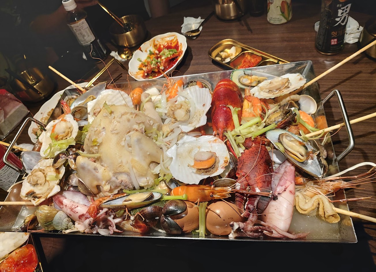 主打海鮮的餐廳,湯底好喝,帝王蟹跟龍蝦廚房上菜之前煮過久,口感偏乾,雞肉口感偏柴。