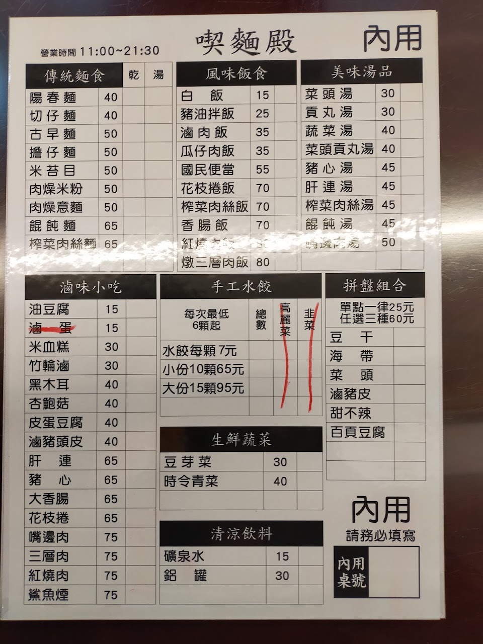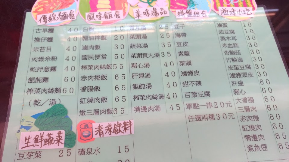 各種麵類分成乾麵或湯麵二種,隨客人喜歡做選擇,另有魯味一樣20元可任選三樣50元,現在還有滿百送30元的招待券(可累積)、於下次用餐滿百即可折抵,非常划算~省很大? …