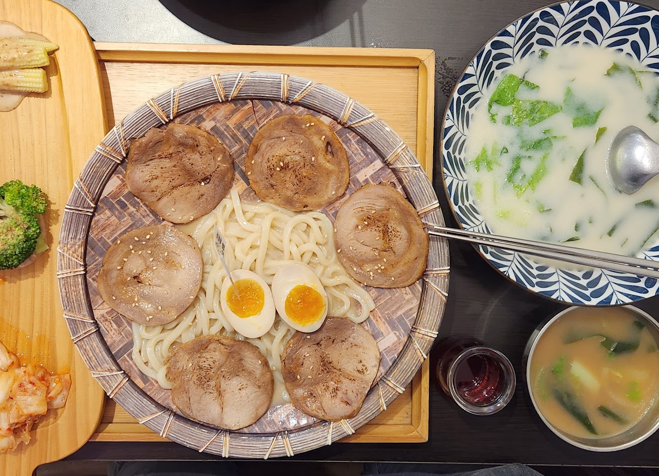 蠻平價的拉麵,湯頭偏海鮮。打卡送的洛神花茶滿濃郁的,容量僅有布丁瓶的大小。