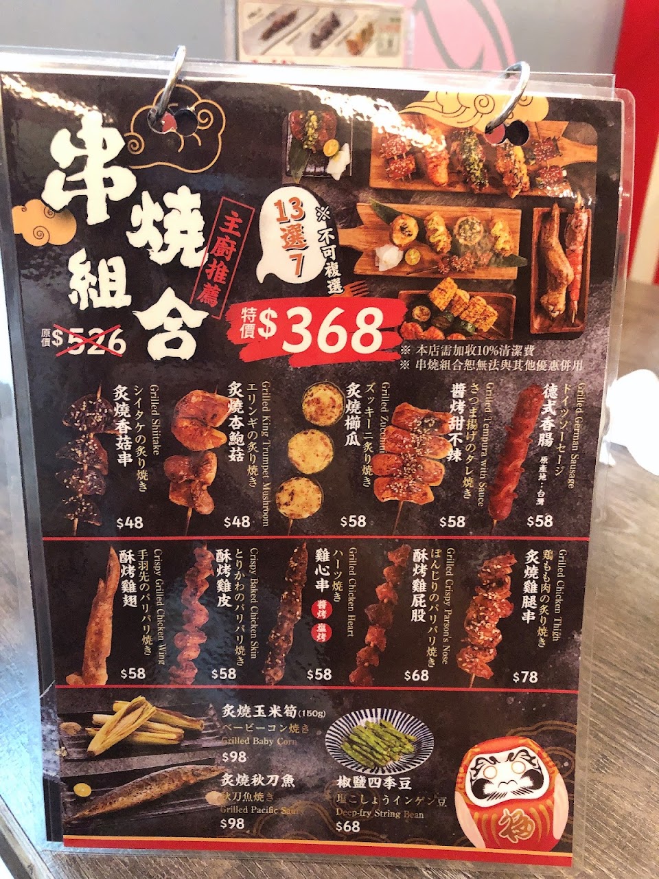 今天點了串燒組合,食物好吃,還會再來,送餐速度不快可以慢慢品嚐!