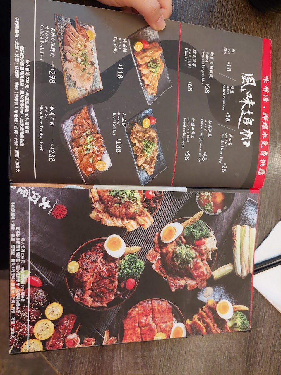 在台北車站二樓微風廣場用餐 店內的餐點牛豬雞選項都有哦 也有串燒跟啤酒可以點喔~