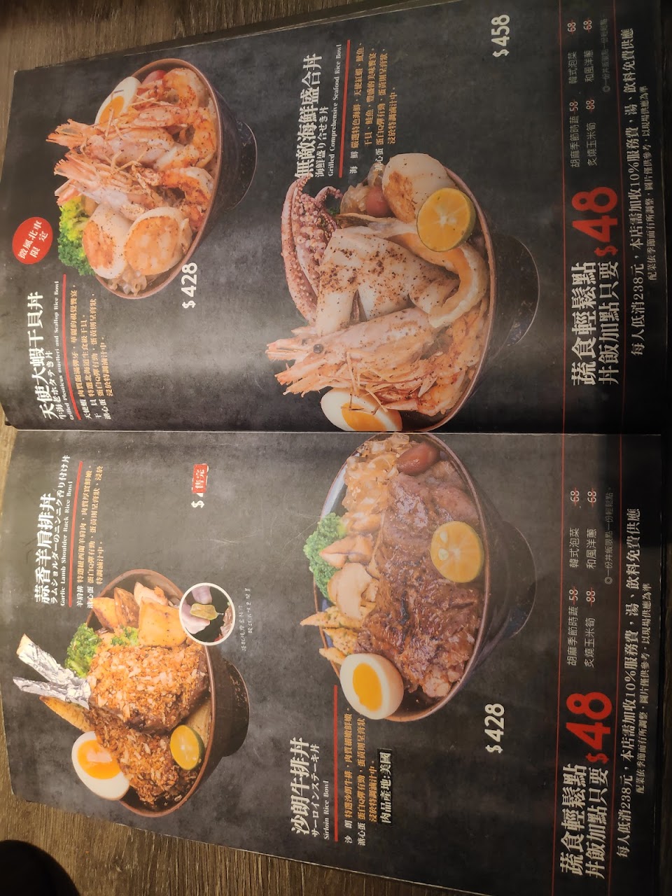 上餐速度很慢,雙人套餐的丼飯一個快吃完了另一個才上,而且丼飯的牛排跟豬排還有單點的牛五花都很硬,只有烤香菇跟起司香菇好吃,其他都不太ok,而且位置相當窄。