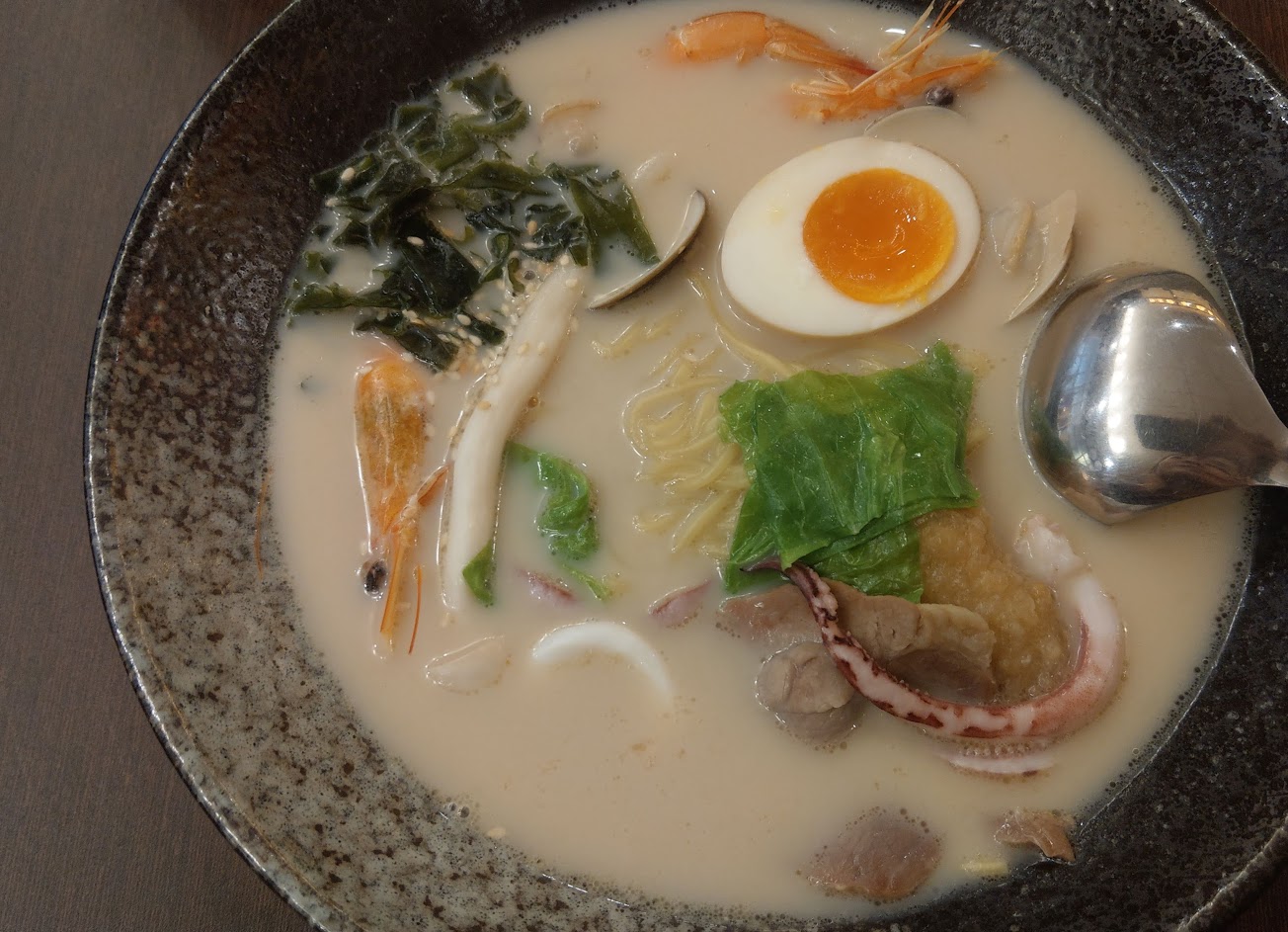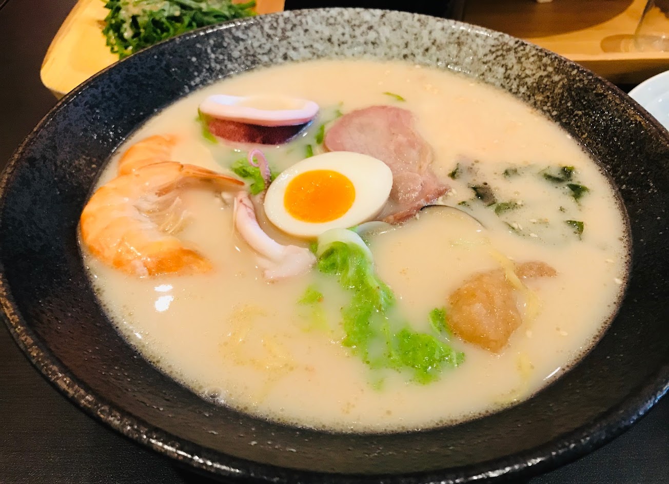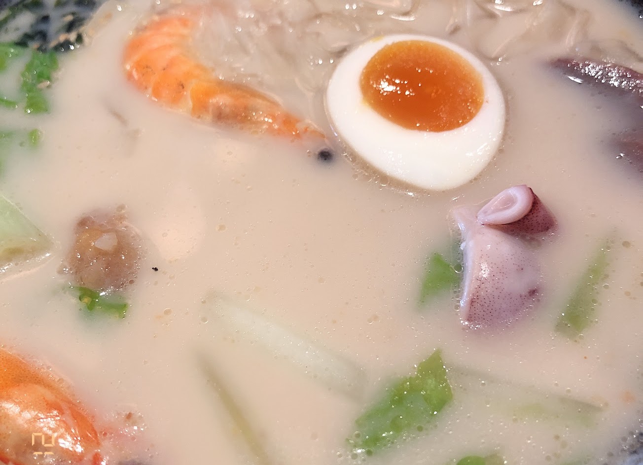 麵食點餐選擇湯頭,有不同的麵體可選擇。豚骨湯頭濃郁卻不鹹,配料都是一樣的,以海鮮類為主,以價格來說算很豐富,會想要再次光顧。