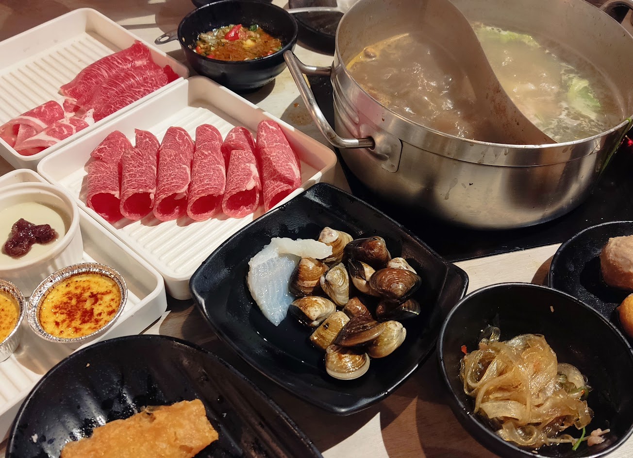 麻辣鍋, 小花枝 帆立貝柱, 肉片, 白蝦 巴沙魚 魷魚, 巧克力布雷, 海鮮盤, oreo鮮奶酪 現烤布蕾