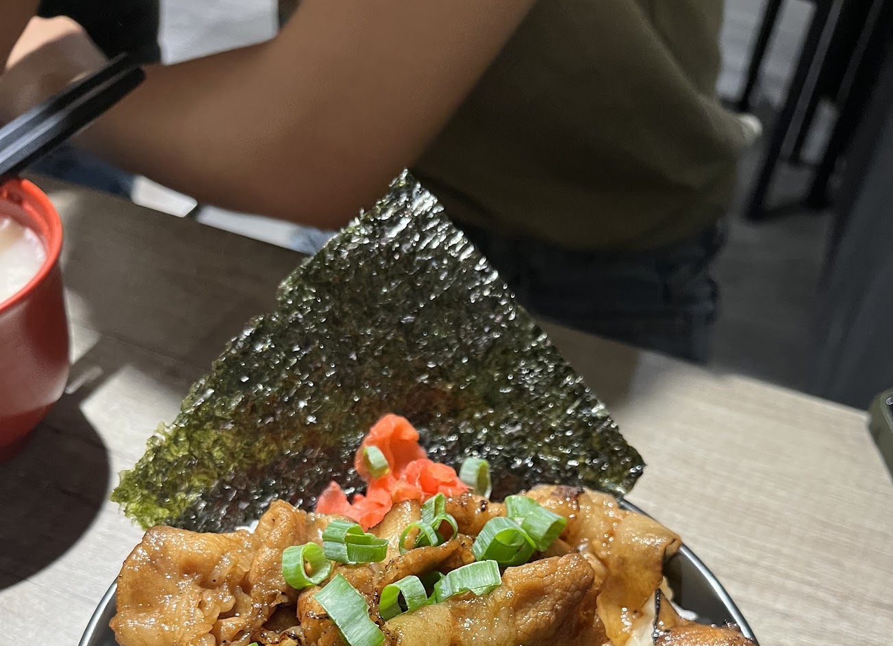 牛排丼的肉本身調味偏清淡,沒有較突出的味道,喝過雞白湯後再吃更明顯,整體份量不大(沒吃飽……)