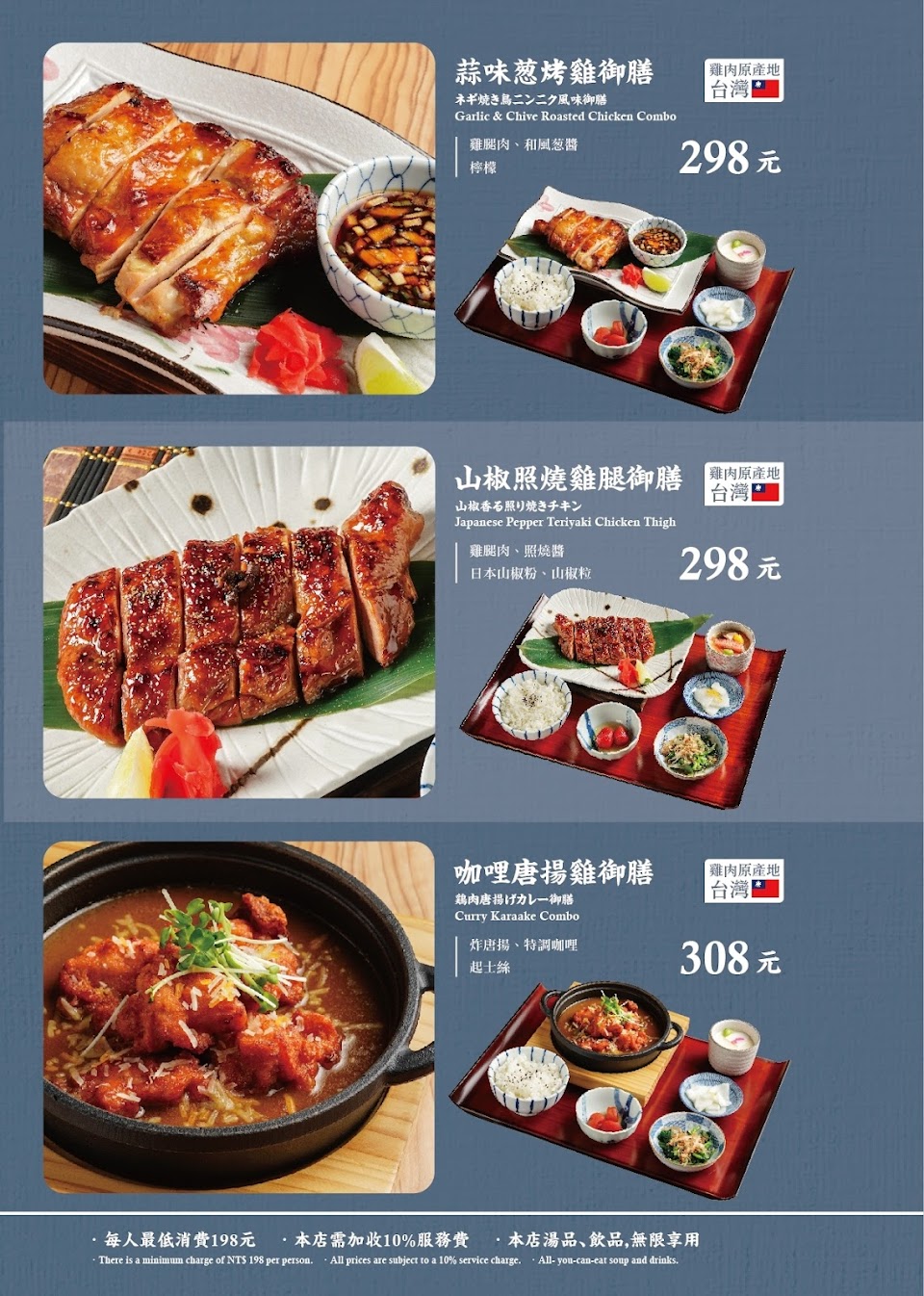 主餐的鍋太死鹹,煎雞腿也煎的過柴,而配菜的三種小菜:油菜老到難以下嚥,涼拌菜也是過酸,茶碗蒸卻反而索然無味,上面的料也是後面放上去的,不是一起蒸的,吃起來完全沒味道,炸蝦泥腸很粗一條,至於為什麼會看到是因為蝦子炸的太乾導致想讓人確認裡面有沒有蝦,關東煮的湯死鹹到不行,鹹到有種苦味,我與同行友人皆無法食用完畢,甜點的奶酪則是完全沒奶味,吃起來有種香精味,總結完全不知道吃了什麼。