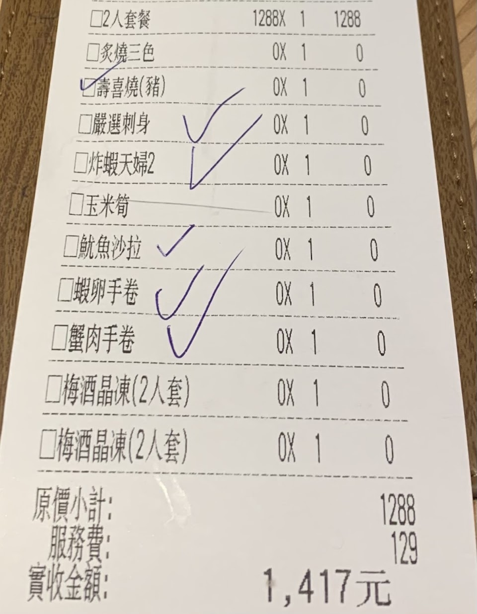 2. 旁邊桌媽媽帶兩個小孩吃完離開後,服務人員來收桌子時看到地上有垃圾,就碎念說「厚,地上還有」,我不知道店員有多討厭小孩啦,但說真的除了夜市攤販會這樣碎念,這種主打日系料理的店,還是第一次看到店員在碎念@@這麼不愛撿垃圾可以不要撿,留給下一個客人撿如何?