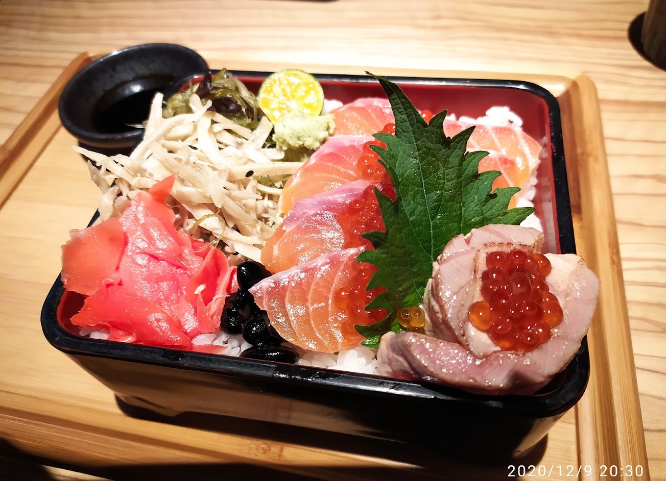 1. 鮭魚跟魚卵都很新鮮? 2. 醋飯跟其他配料味道中規中矩,沒有留下特別的印象? 3. 餐點附上的山葵不知道為何吃起來沒什麼味道? 4. 整體而言,店面的位置非常方便,適合路過北車的旅人。餐點上,鮭魚重的訂價偏高,份量小且沒有附其他小餐點,覺得CP值普通。