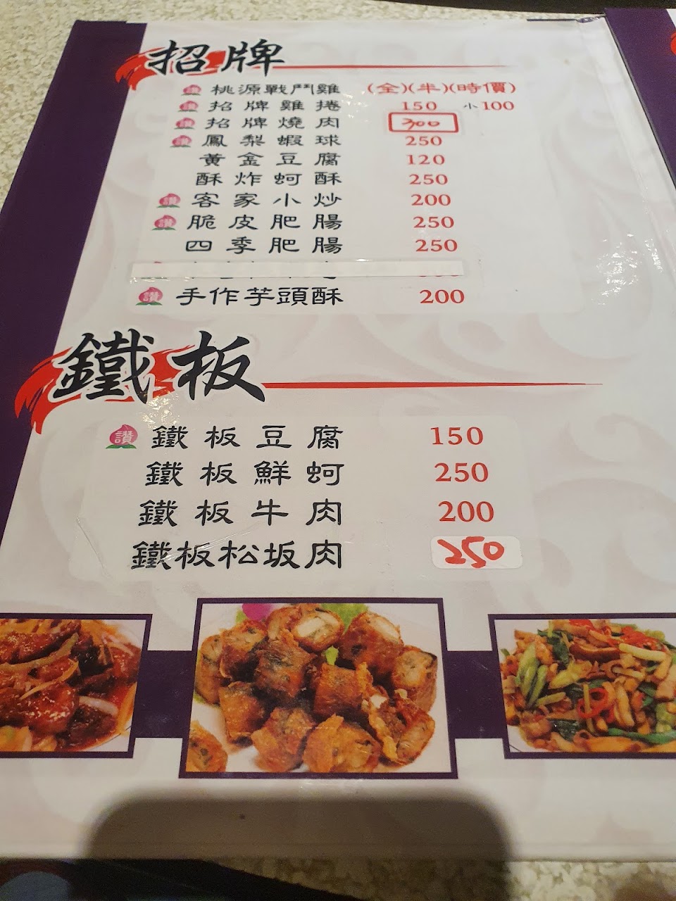 皮蛋地瓜葉 薑絲大腸 脆皮大腸 客家小炒 鳳梨蝦球 桃源戰鬥雞 雞油飯 三杯透抽