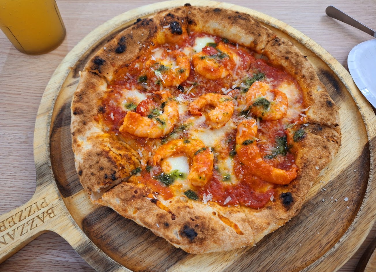 滿滿蝦子的比薩。起士四重奏!