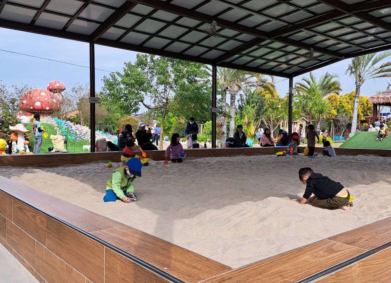 園區廣闊,有許多供拍照的造景;廣場有彈跳球及跳跳馬供遊玩,適合小朋友放風的好地方,但部分大人與大童會大力拋球或踢球,若有幼童則需特別注意安全。除此之外還有溜滑梯、搖搖馬及小型滑草,是兒童天堂。