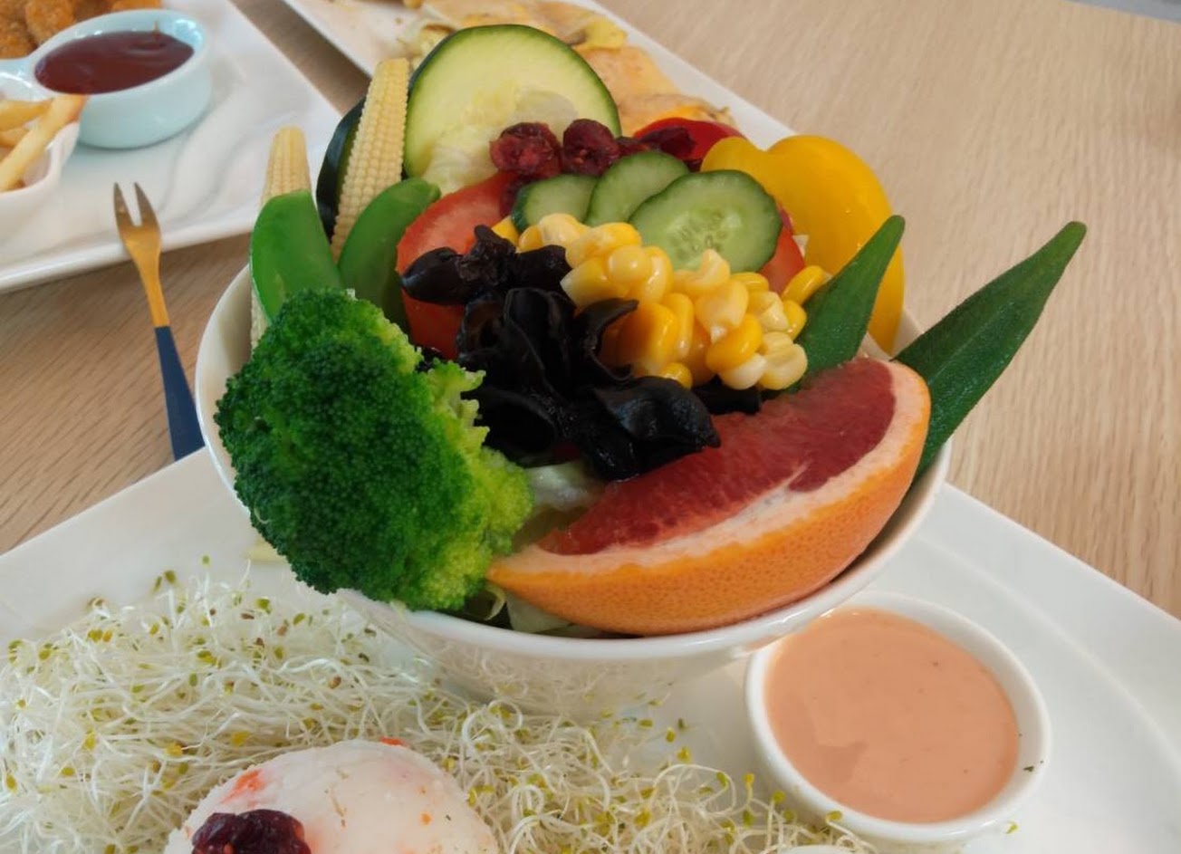 餐點選擇多也美味,店員親切有禮,用餐環節也舒適,沙拉蔬菜份量很足夠