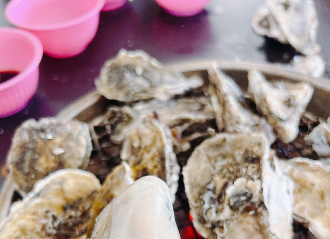 烤生蚵吃到飽, 蒸白蝦, 海鮮炒麵, 清洗過的生蚵
