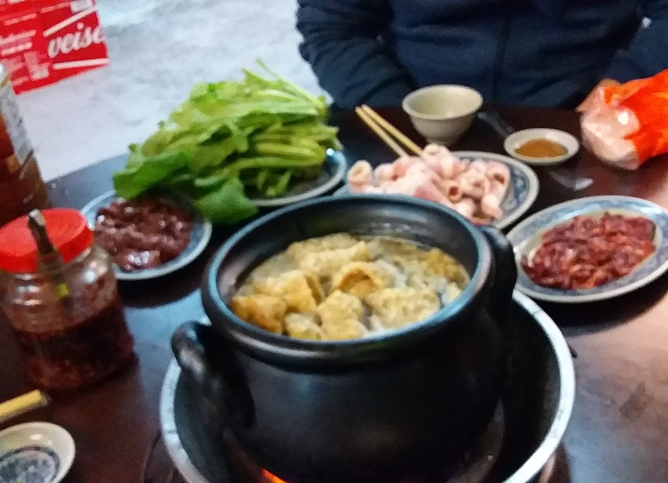 我們火鍋剩下很多材料,老闆娘熱情幫我們加湯讓我們外帶回家。