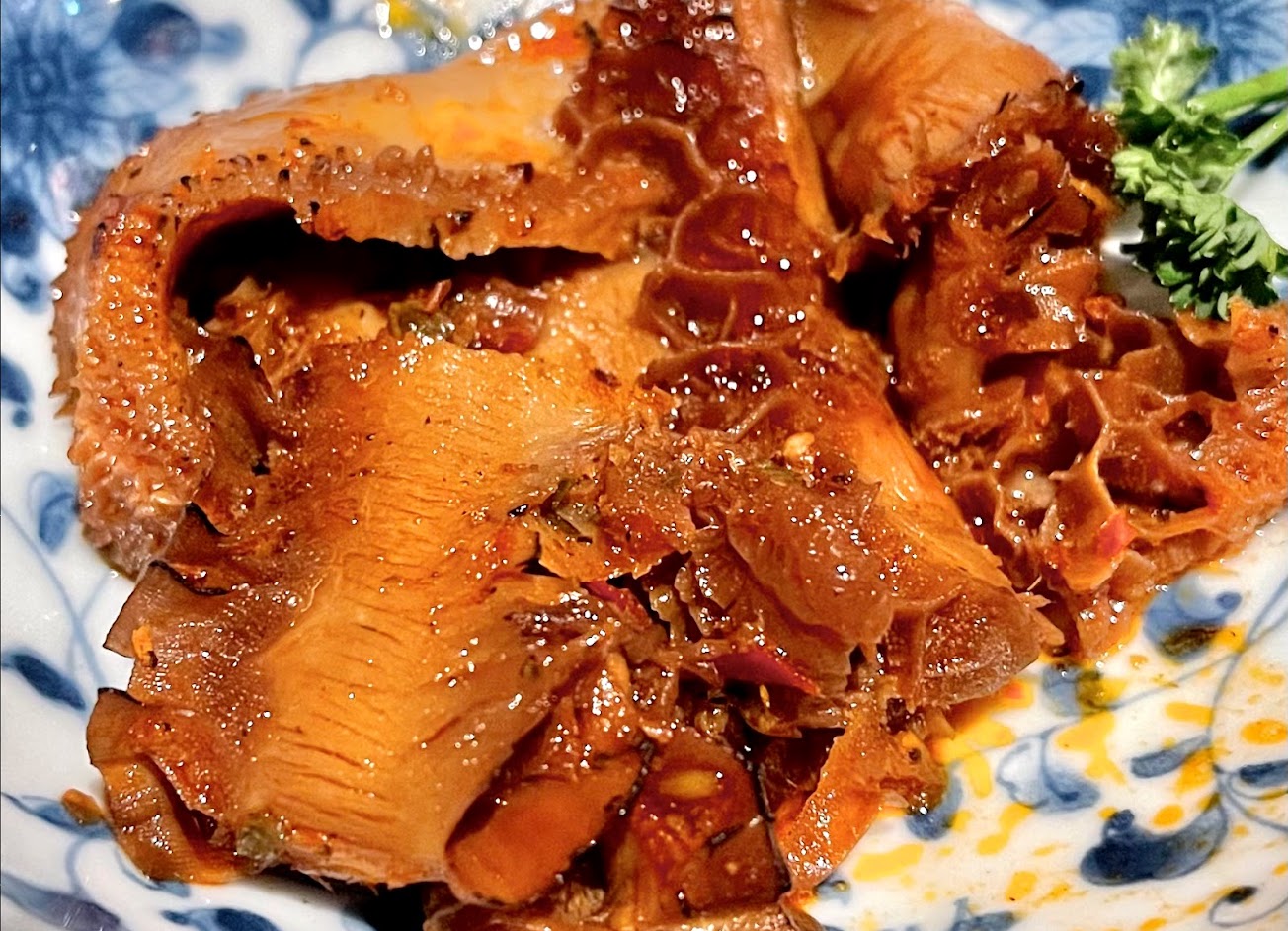 好香、好香、好香,從端上桌開始,椒麻香氣撲鼻,我邊拍邊口水直流了,這超入味的牛筋/牛肚/大腸,聽店家說不只滷一次,還加入了獨家秘方二次醃製入味,然怪這微辣的口感讓我配啤酒喝,整個胃口大開,喜歡吃辣種口味的,我蠻推這道的