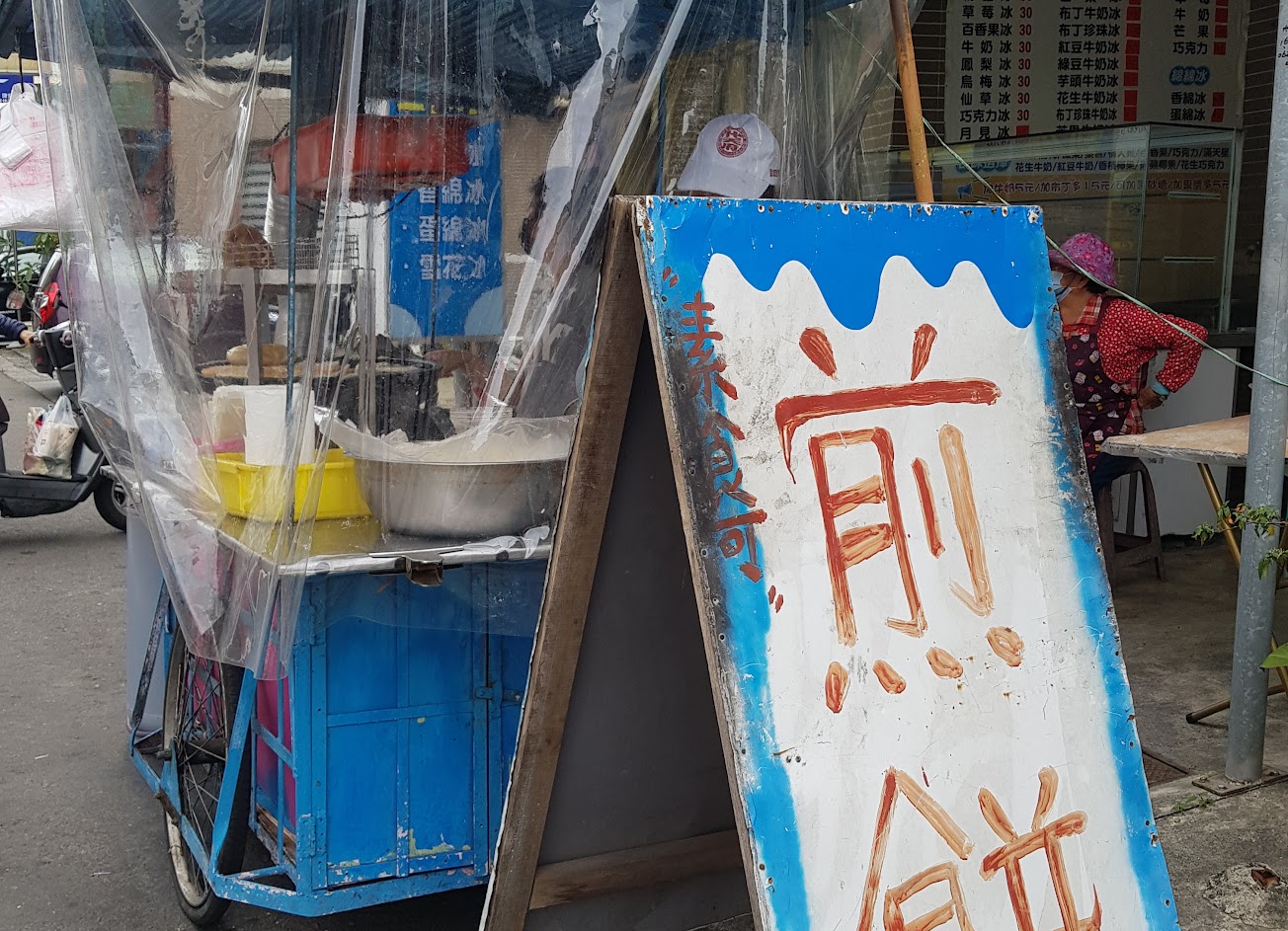 夏天賣冰,高麗菜便宜時賣煎餅。我少吃冰品,對此不瞭解,但煎餅的生意很好,雖然只有花生、紅豆與蔬菜三種口味,但有時候需要耐心排隊。
