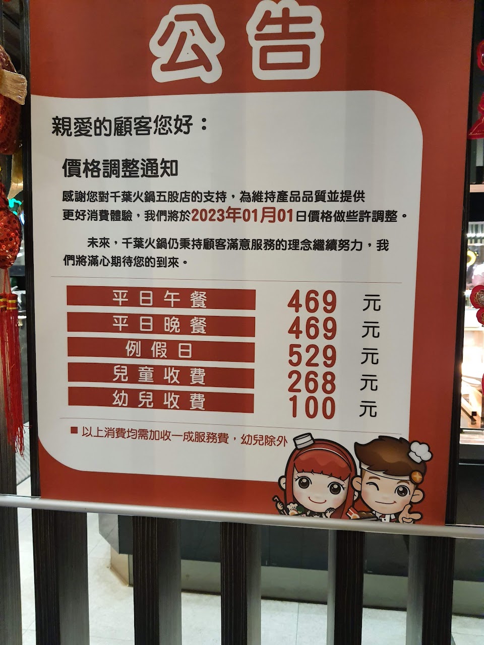 建議服務費可以免收,因為我真不知道千葉您的服務生在客人用餐的時候服務了什麼事情??