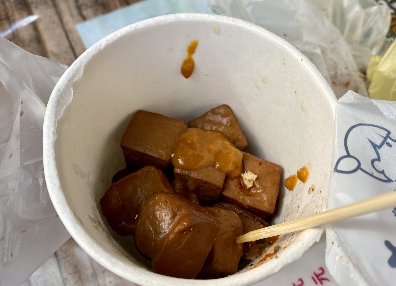 3. 豆乾 表現上就沒有特別出色驚艷,需要搭配辣醬的混合才能使其口感提升。?單吃就屬於一般口感味道。