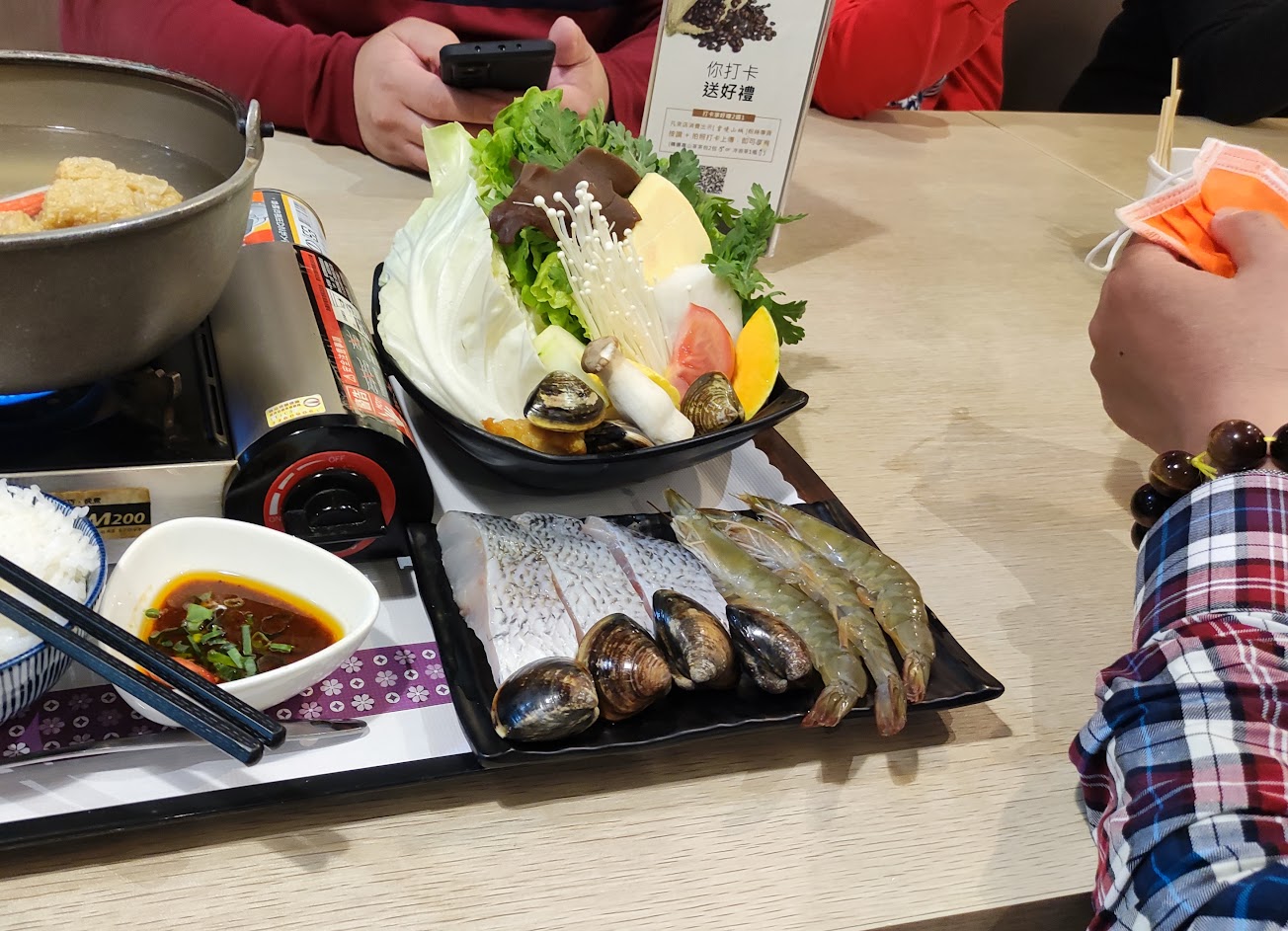 套餐及火鍋好吃,CP值很高。套餐附的阿里山茶有股清香回甘的味道,讚。