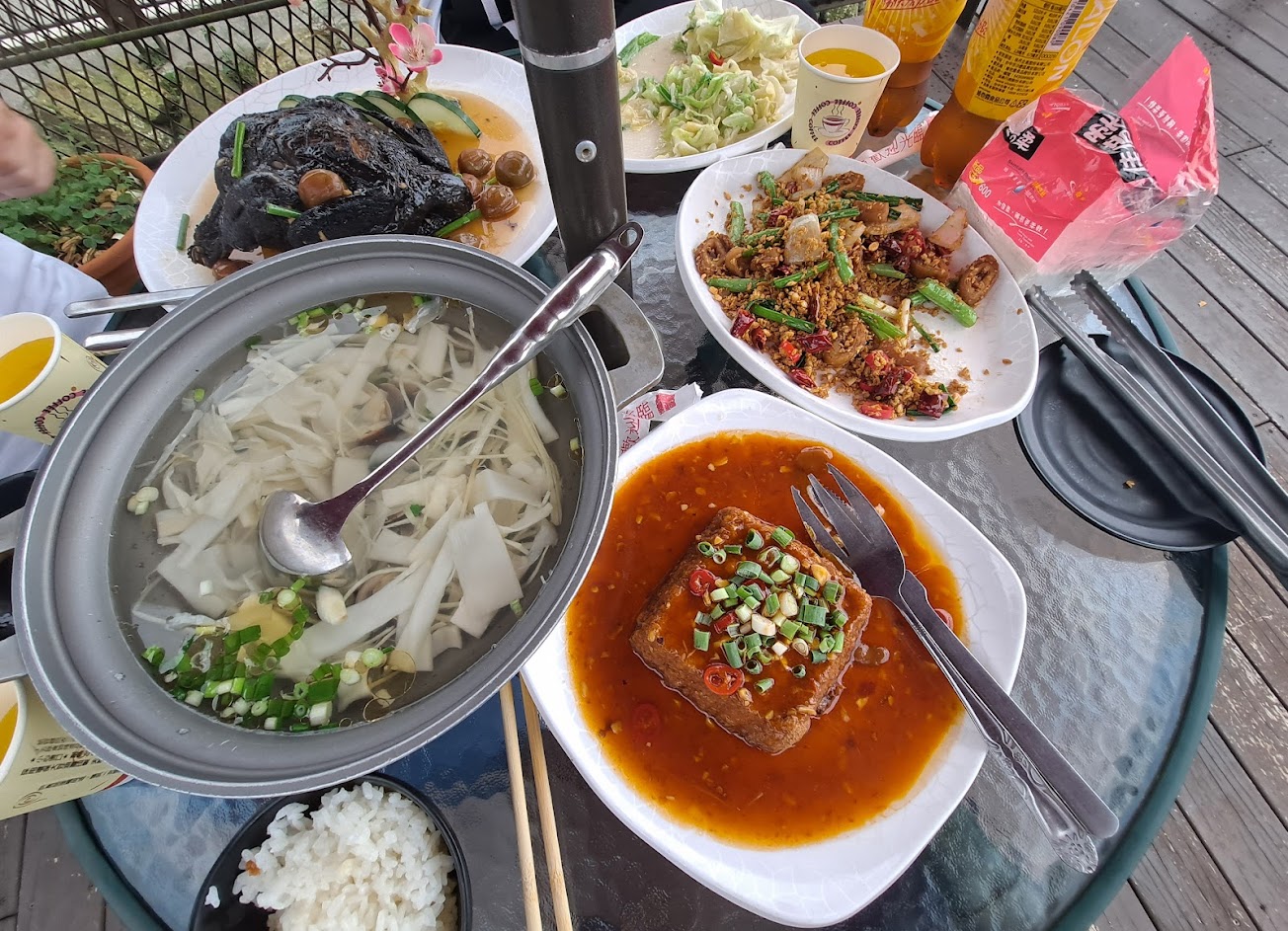 環境寬敞,停車好停。菜色道道口味佳,店員介紹的菜色都很下飯。吃完還可以在戶外涼亭泡茶看風景。遠眺的的景色很美。遇到雲瀑整個很漂亮。老闆還提供兩壺紅茶給我們喝。雖然上山的路很小,但是是值得再來的地方。避暑勝地。
