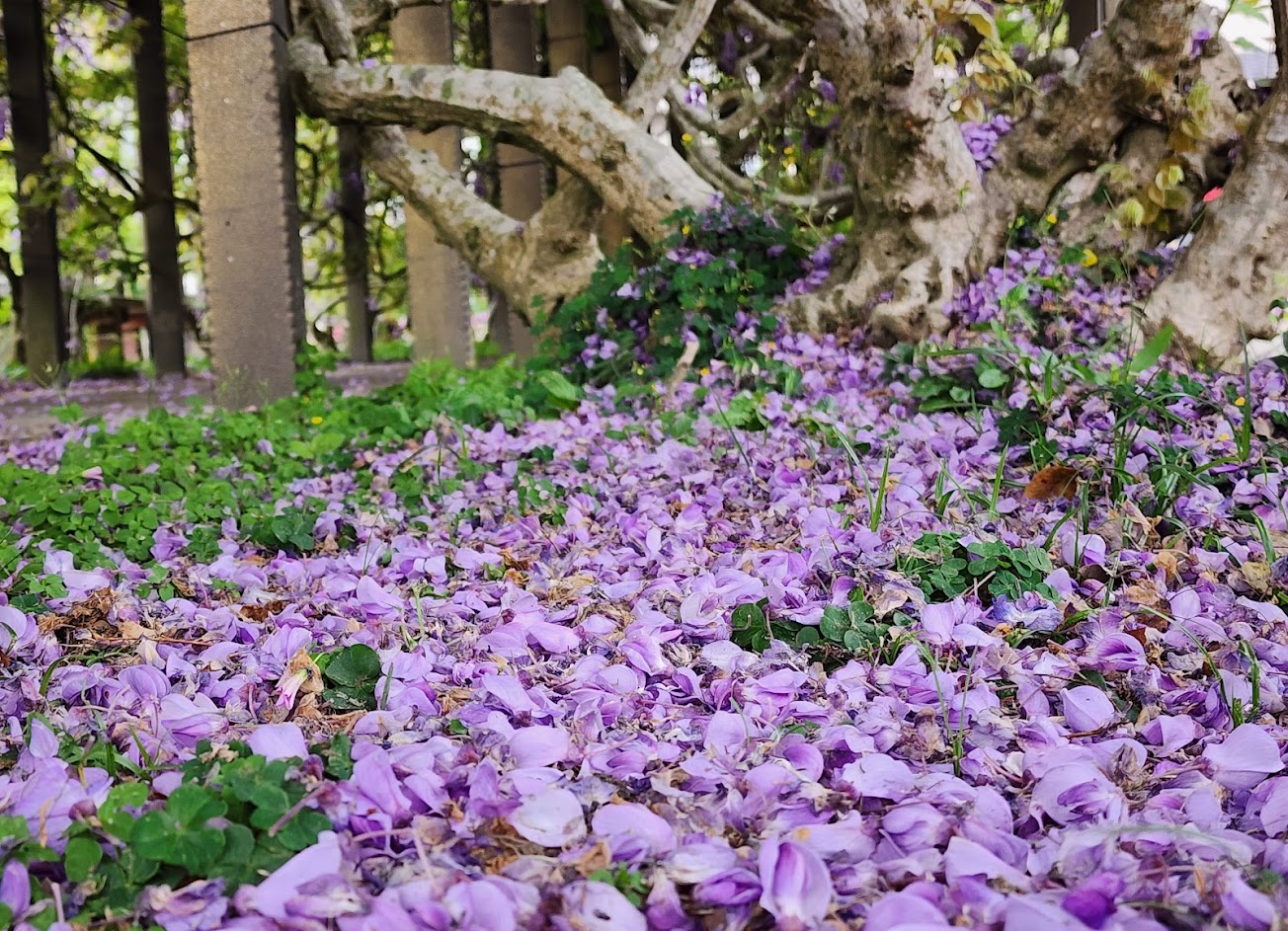茶壺餐廳~每年3月紫藤花盛開季節時,能看到一串串宛如紫色風鈴的花朵隨著微風搖曳,傳遞著「醉人的戀情、依依的思念」的美好花語,浪漫畫面令人相當傾心,紫色紫藤的花語是「沈醉於愛裡」,紫色的花朵十分美麗,一串串的花序懸掛在綠色的藤蔓間,隨風輕輕搖曳,十分雅致