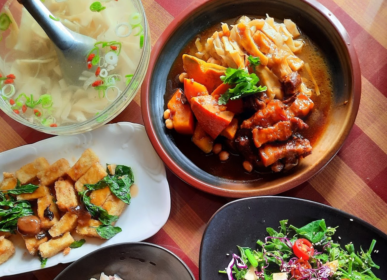 太好吃了 四菜一湯的菜色搭配很絕配! 筍子軟骨湯 夠燙 我喜歡! 湯頭清淡不會太鹹 紫蘇梅炸豆腐 炒高麗菜 南瓜鷹嘴豆燉肉超棒的! 還有野薑花煎蛋也不錯 (可以油再少一點更棒! 重點還有上菜速度快 !