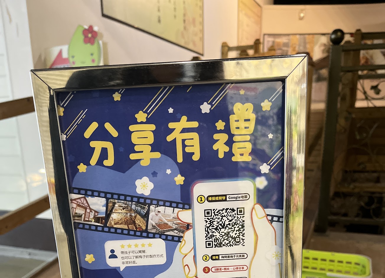 裡面有梅子製成的相關介紹且也有闖關遊戲卡可以玩很有趣!