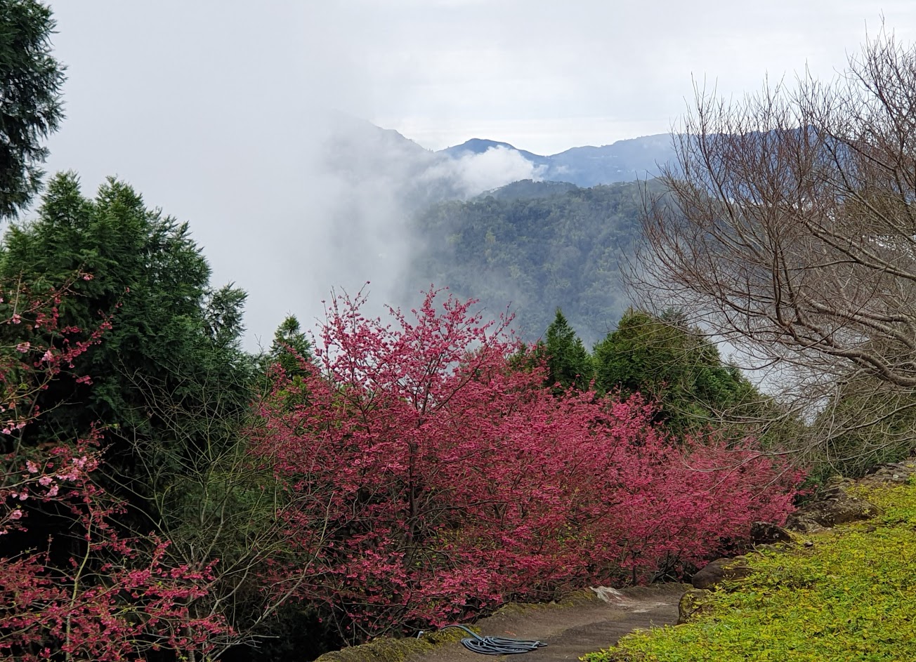漂亮的新興景點,遠眺雲海,園區山櫻花已盛開