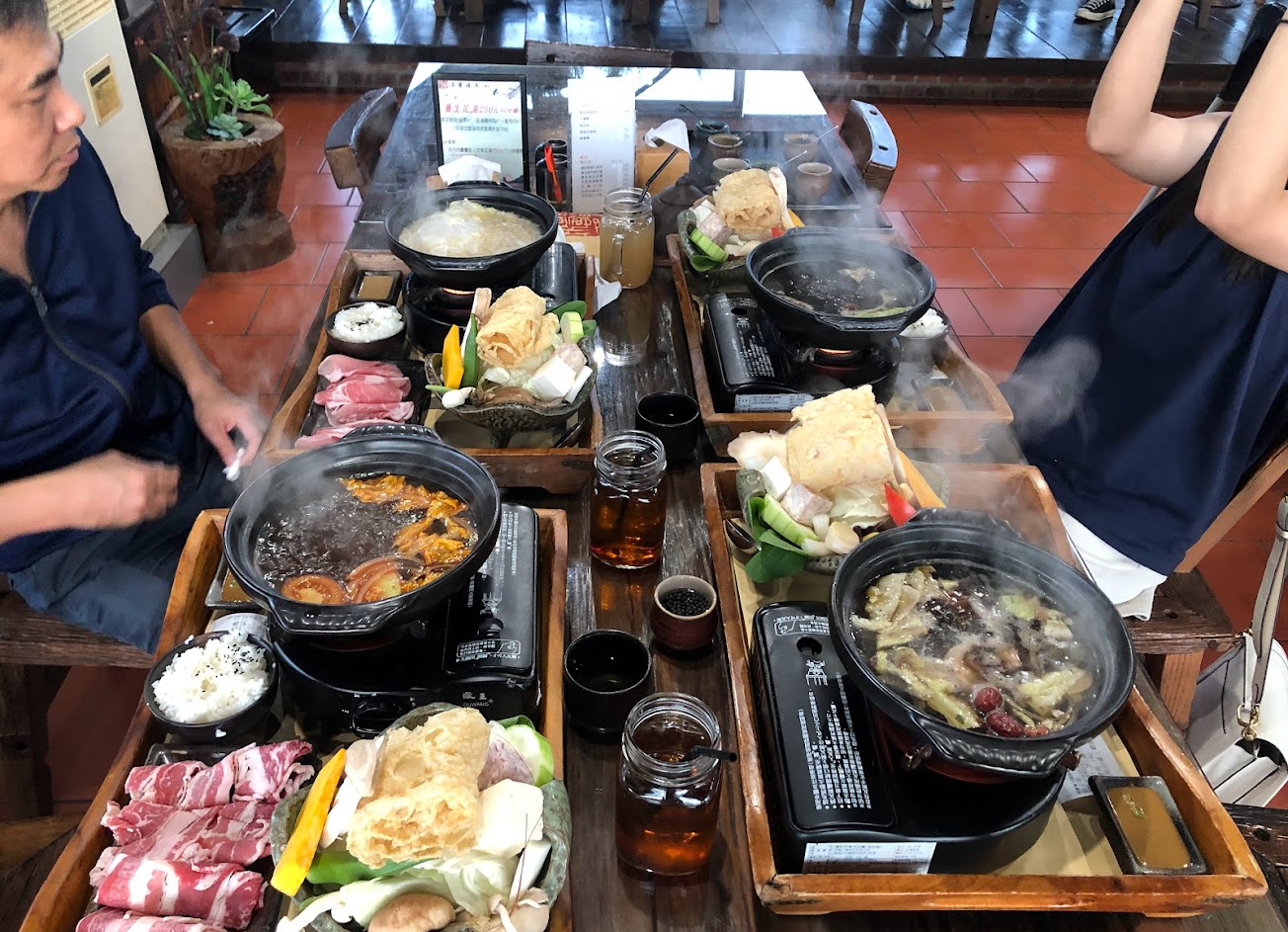我們點了四份火鍋,最推黑蒜頭雞火鍋,湯頭味道足夠,雞肉軟硬適中好吃,其它的藥膳養生鍋、活力有氧蕃茄鍋,湯頭還行,不過牛肉的肉腥味太重,酸白菜鍋也還好。