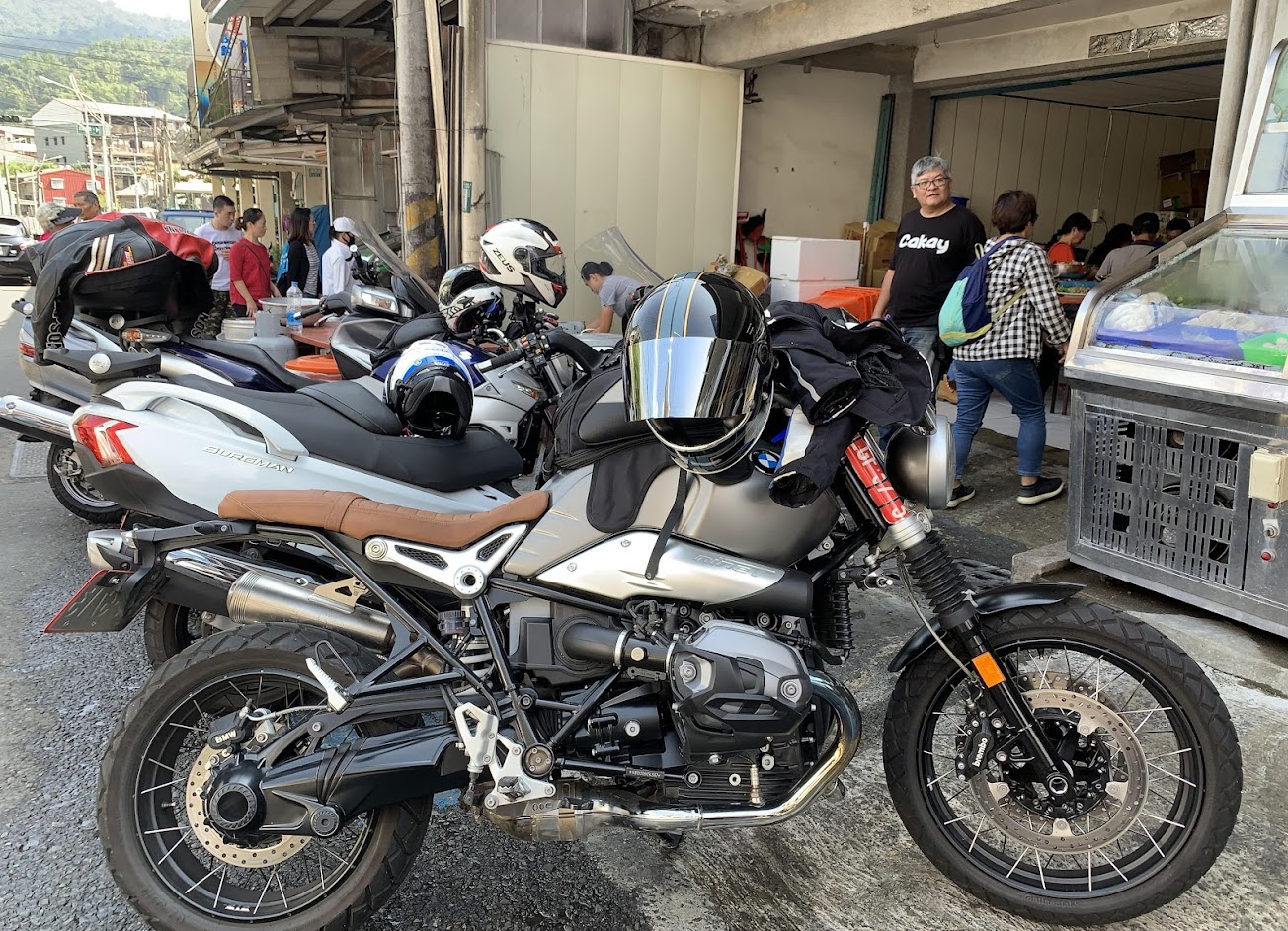 忙碌的工作人員,服務是讓我滿意的,平價美食在景區的消費,給他按讚,門口欣賞這部重機,與友善車主輕鬆交談。