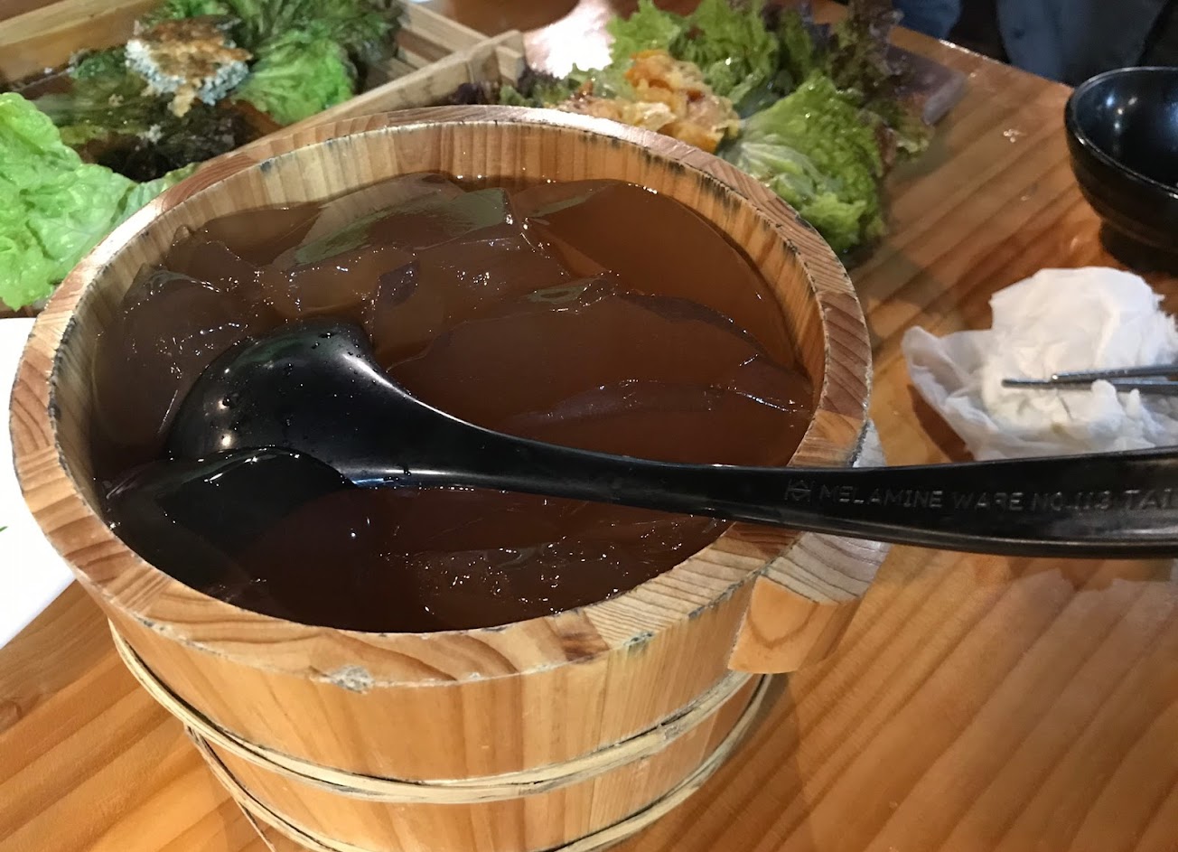 愛玉豆腐很特別,老闆娘說愛玉是用豆漿洗的;