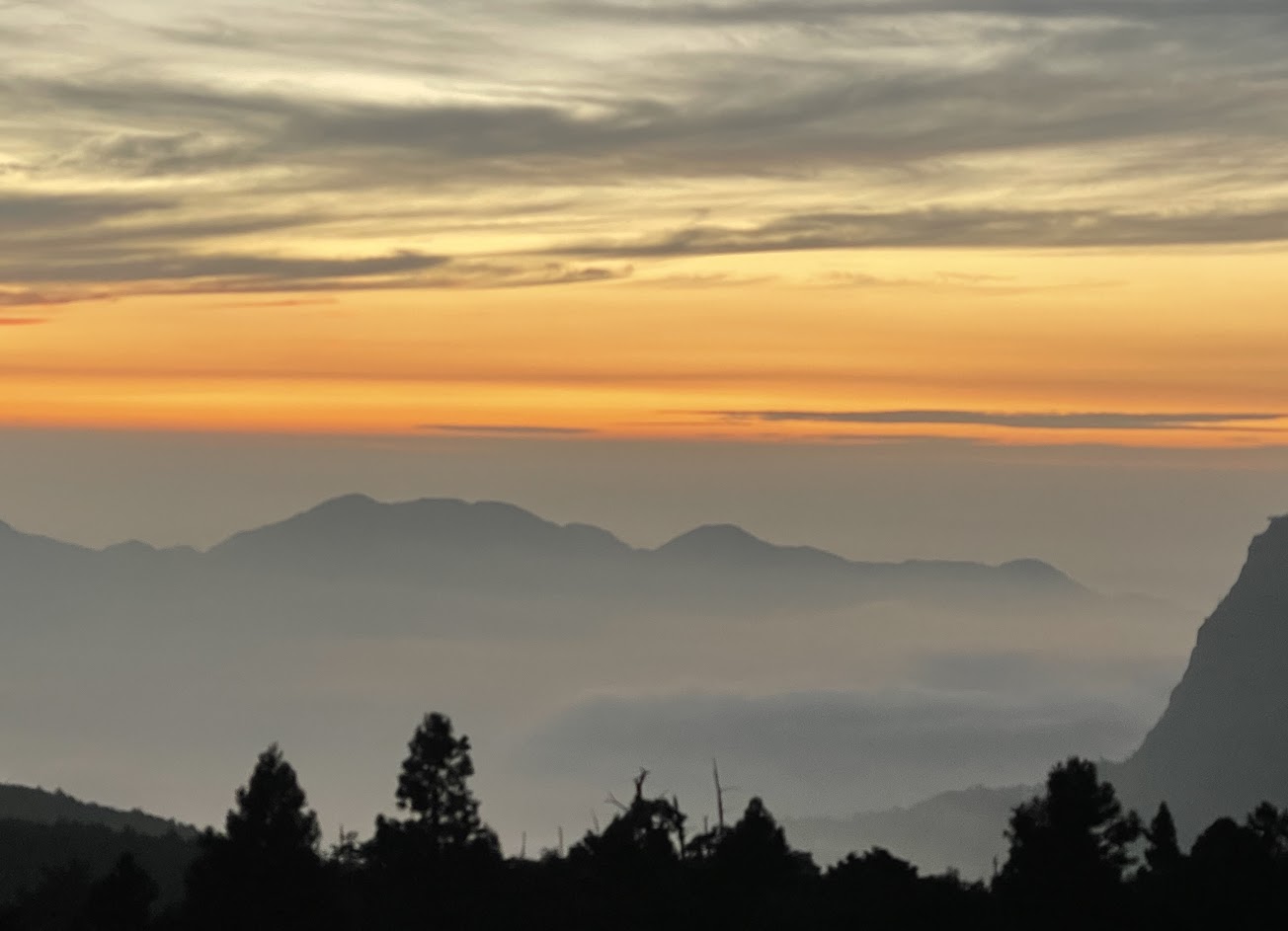 6月暮雨星光,但這天雨下太久了,本以為無法看落日了,時間快到時還是上樓碰運氣,沒想到雲層、夕陽、山嵐、時有時無的細雨合繪一幅動畫,我慢慢欣賞,用手機紀錄。