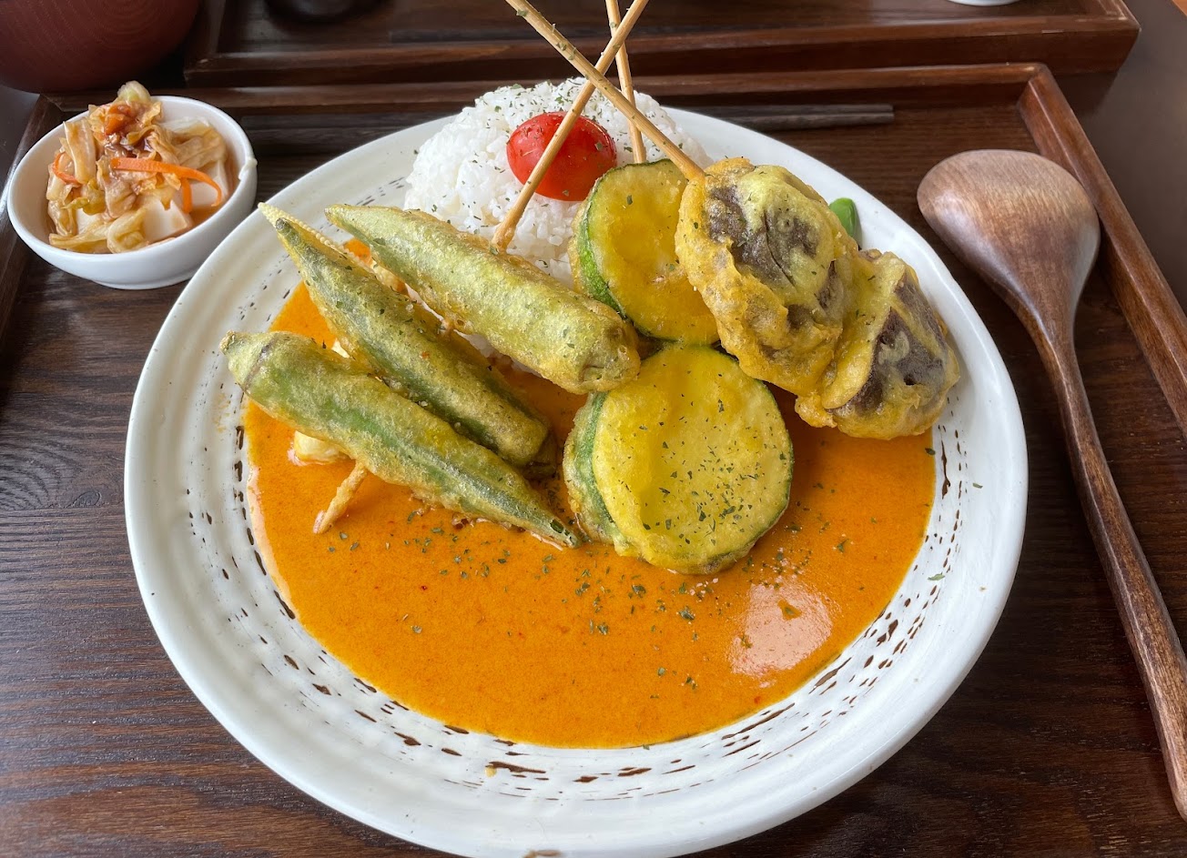 點了蔬菜天婦羅咖哩,很日式的用餐環境,乾淨整潔,很好吃的蔬食咖哩,適合喜歡咖哩的素食者🌱