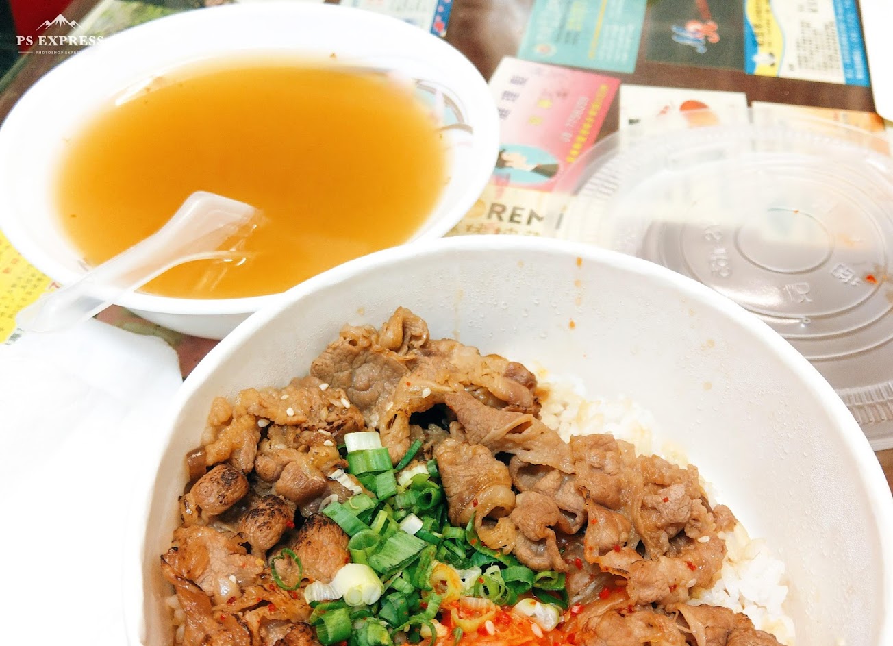 肉類加量的價格跳得有點大,不過是滿划算的,很好吃,飯類會附一碗湯,聽說可以續碗,跟店員說就可以了。