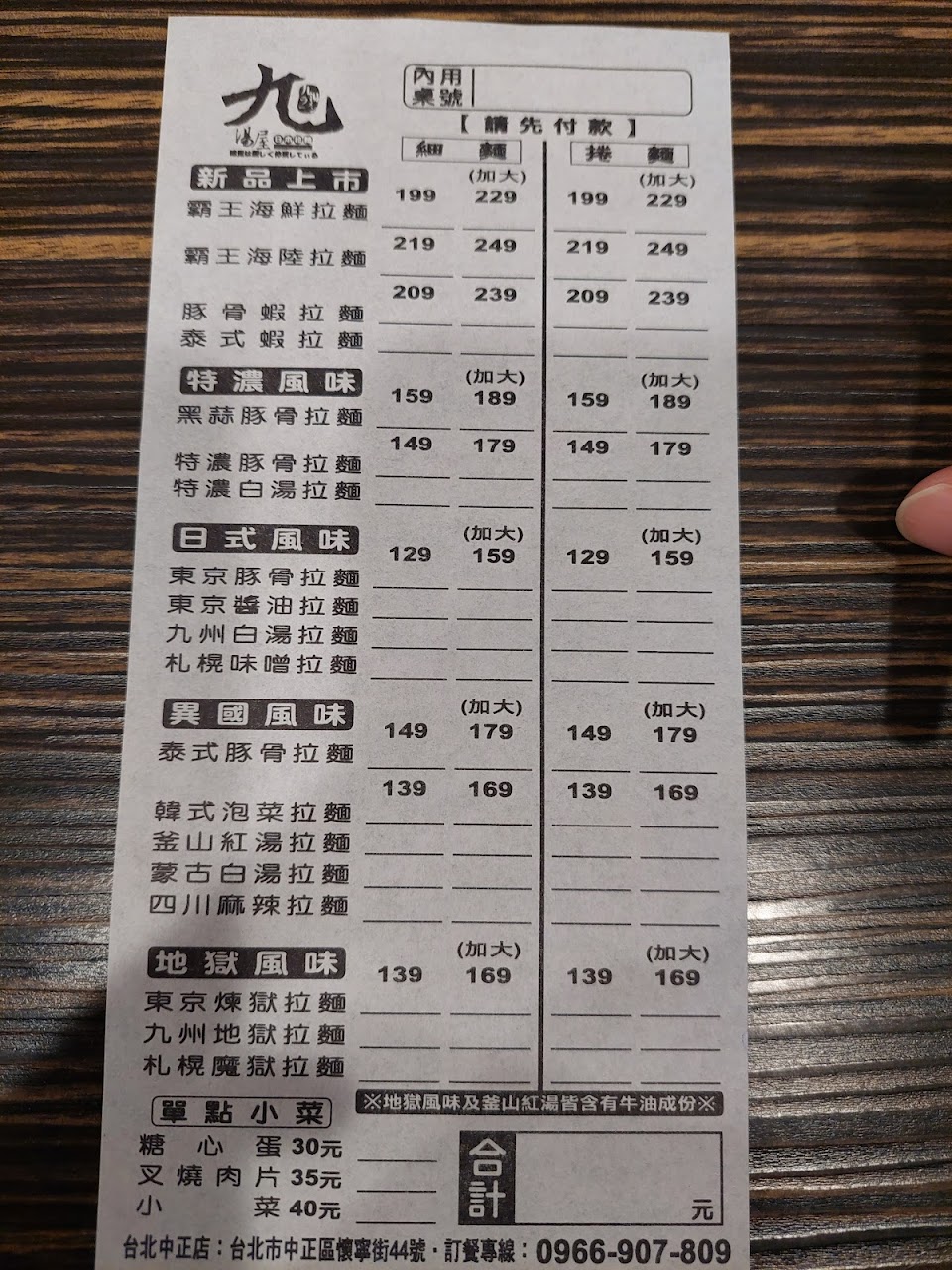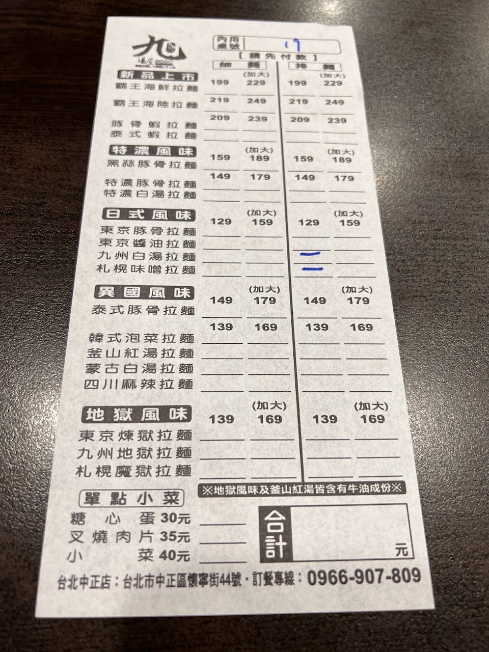 2024最新在地推薦餐廳的菜單_九湯屋日本拉麵台北中正店的菜單、圖片
