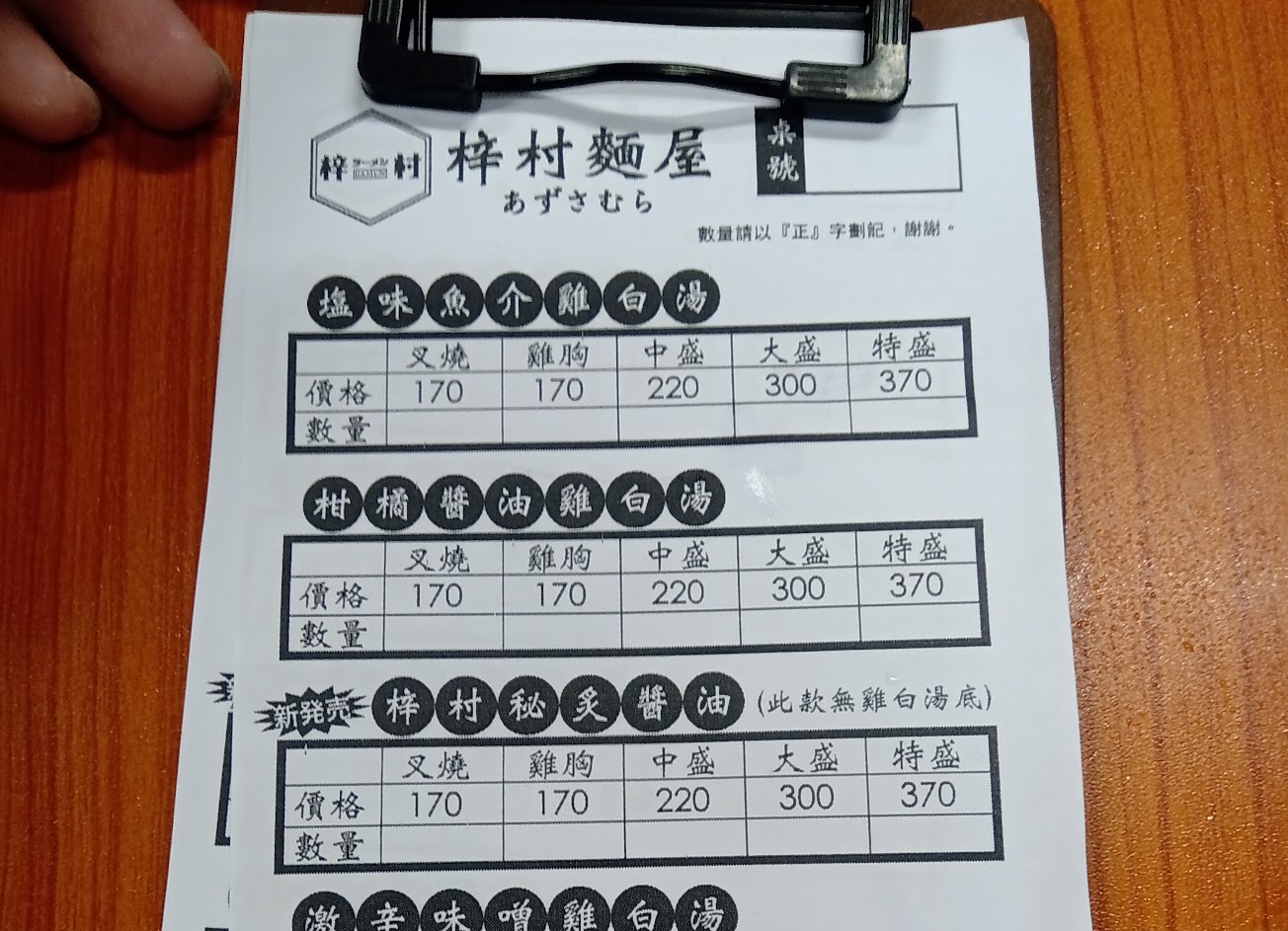 前些日子來吃看看這家,還沒有吃過的拉麵 ?店家在小巷子裡面,所以路過要多注意看 ?裡面的拉麵,口味沒有很多種,只有分成裡面的料多跟少而已。 ?一致覺得面體很好吃,湯也可以。 ?麵裡面的肉,有豬跟雞胸,雞胸吃起來清淡口味,豬肉吃起來有一個不知道是煎的味道還是烤的味道,個人覺得比較敏感,接受度低。 ?裡面的座位不多,但因為去的早,也沒有等候很久,很快就用餐到。 ??門口處可以停放機車,若是汽車,需要另外找停車格,或是可以停汽車的地方。