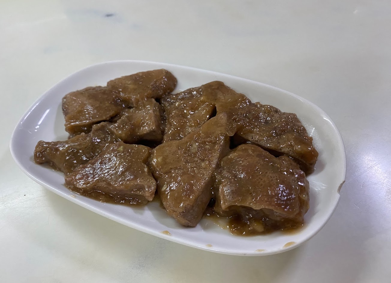 小菜是豬肝切得很厚,不過吃起來不會有爛爛的或者是內臟的不舒服感。調味偏甜我是覺得可以 不過我媽覺得豬肝切這麼厚視覺看起來就會覺得很噁心 大部分的豬肝切厚了吃起來都很噁心,所以視覺上看到會先不舒服,但吃下去的時候不會有那個噁心感。這是我覺得值得推薦的原因,但我媽過不去視覺那一關XD