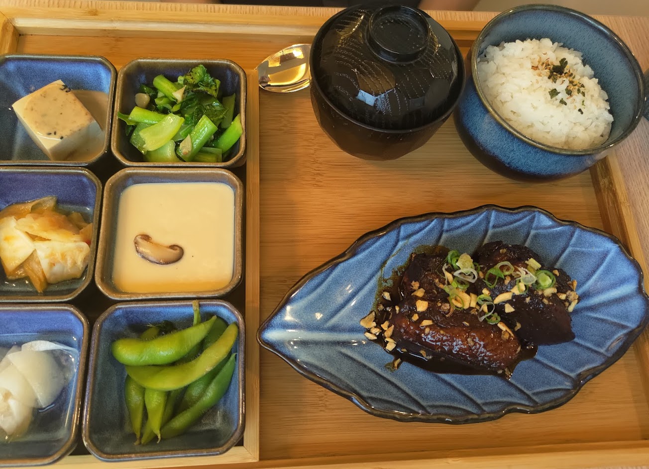 店員都非常親切,感覺回到自己家享用美味料理。 每一項主食食材都很新鮮、調味適當,配菜也很豐富美味! 蔬食定食記得前一天要預定唷! 手工特製的味增醬配上日本圓茄和烤杏鮑菇、紅椒黃椒都可以吃出食材的鮮甜~~ 餐後的飲料錫蘭紅茶及麥茶也很順口 另外,手沖咖啡更是厲害👍🏼 咖啡師選了很厲害的艷夏花荔咖啡,讓不愛好咖啡的人都覺得香氣和口感都很棒~ 打卡贈送的奶酪也完全不馬虎,加上的韓式柚子醬特別好吃完全不會苦
