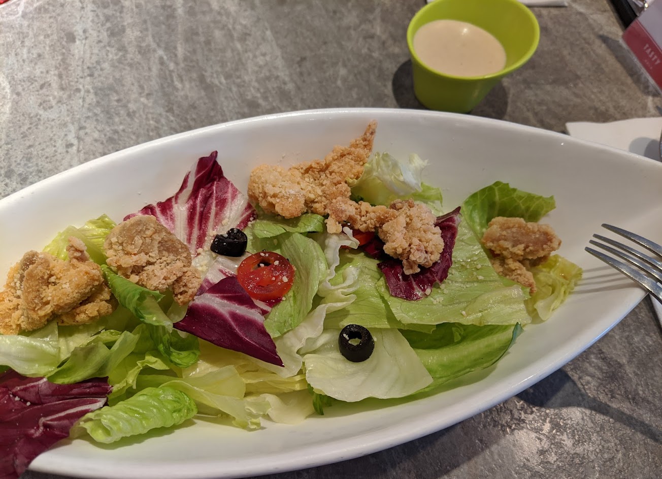 沙拉 蒜味相當濃郁 食材選用尚可 唯本身較喜清爽的沙拉 偏偏又只提供凱撒及胡麻醬
