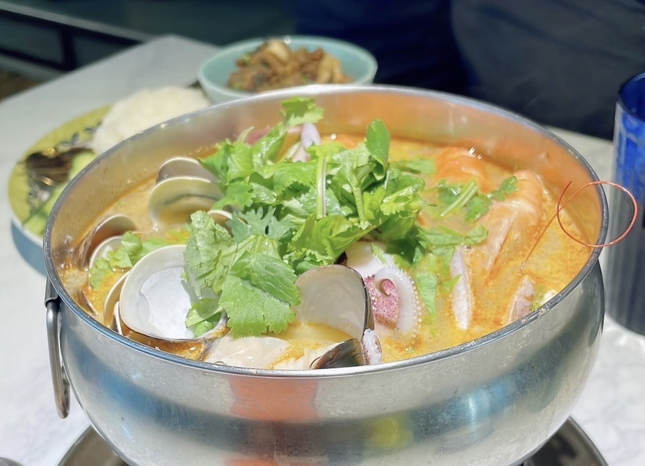 過年期間帶屏東的家人出來吃飯,在網路上隨意找到這間店,一開始很怕又被評論騙了,結果真的很好吃還獲得全家好評! 我們是五位大人,供點了以下菜單,2000元有找!(之前吃連鎖品牌的泰式每次都3000元起跳,還不敢點湯跟魚) 青木瓜冰拌海鮮:花枝、蝦子非常新鮮彈牙,口味比較辣,但不會死鹹非常開胃 海味月亮:整隻的蝦子配上應該是花枝漿,很有嚼勁。好吃到忘了拍照⋯一份有5個 泰式紅奶茶:茶香濃厚,搭配碎冰真的很泰國餒!沒有調整甜度,不會太甜~ 白飯*6:沒有吃過這麼濕潤的泰國米,太好吃了吧! 清蒸檸檬鱸魚:鱸魚非常新鮮肥美,醬料是清爽的檸檬酸味,這個價錢這個口味真的太划算了! 白苳陰酸辣海鮮湯:花枝、蝦子、蛤蜊的量都給很多,口味偏重酸辣很夠,不會死鹹!