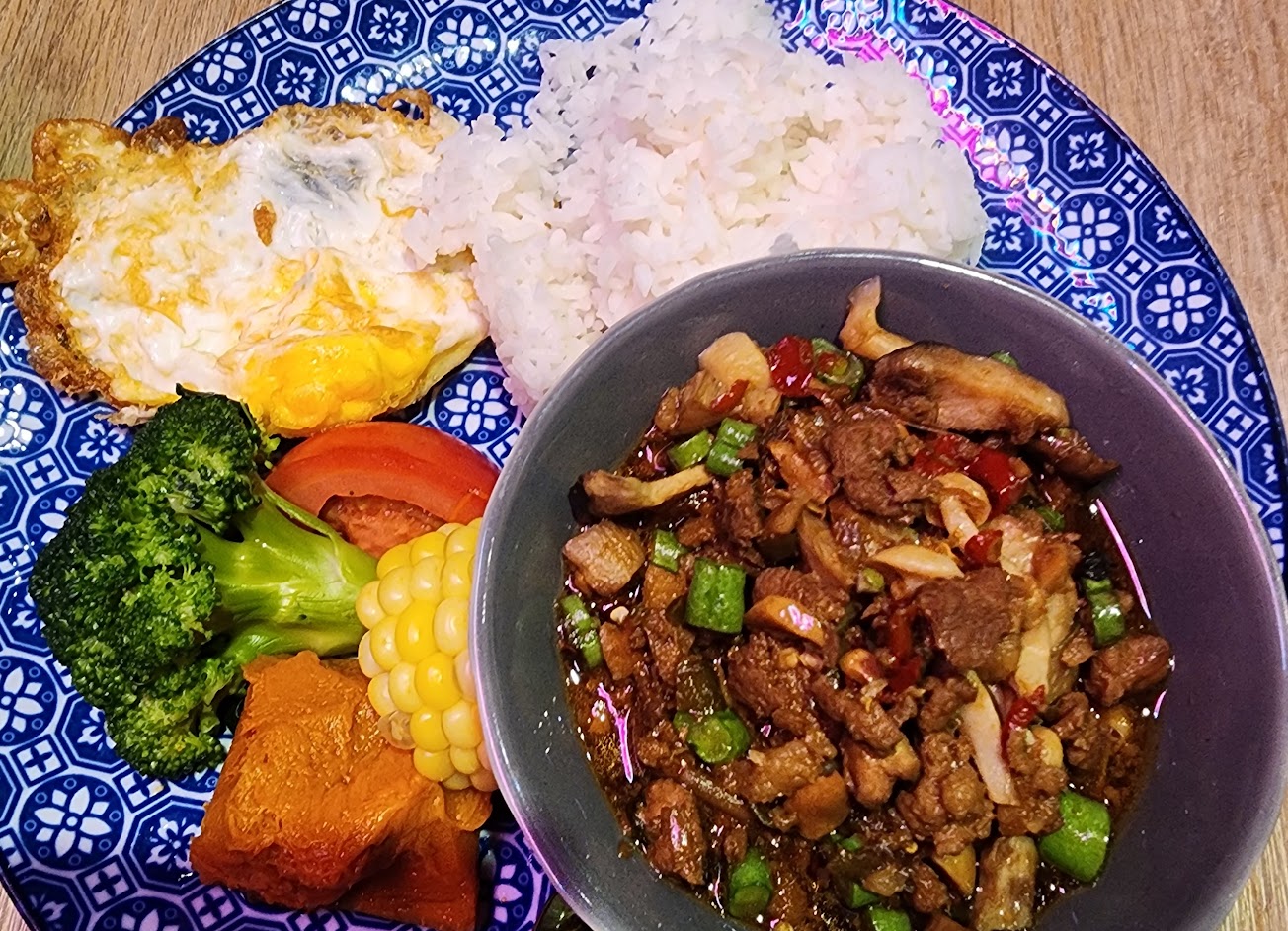 佬媽子 朋友介紹的店,在百貨公司後面,鄰近屏東夜市,相當熱鬧,從店門口就散發濃濃的異國風情,進去更是眼前一亮,華麗的擺設與吊飾,彷彿身處東南亞國家,加上充滿異國情調的背景音樂,不說我以為出國旅行,店家養了幾隻貓,在通往洗手間的走廊上弄了隔間,洗手間受限於格局配置較為狹窄,進出仍須留意腳步。點了綠咖哩、月亮蝦餅、起士肉球,被月亮蝦餅地道的味道給折服,酥脆的外皮,滿是鮮美蝦味的內餡,酸甜可口的沾醬,簡直欲罷不能,起士肉球點中孩子的味蕾,不用催促自己搶食,簡直是父母的天堂,綠咖哩稍微帶有點辣,但椰奶溫和的中和新辣的口感,咖哩內的蔬菜更吃得出店家用料的精心挑選,飲品更是一絕,建議大家來訪都要來杯泰式奶茶,一定不虛此行。附近有停車場,而且收費便宜,非常方便。 服務 內用 餐點類型 晚餐 平均每人消費金額 $200-400 餐點:5 服務:4 氣氛:5 建議的餐點 濃郁椰汁雞飯套餐, 極品綠咖哩飯