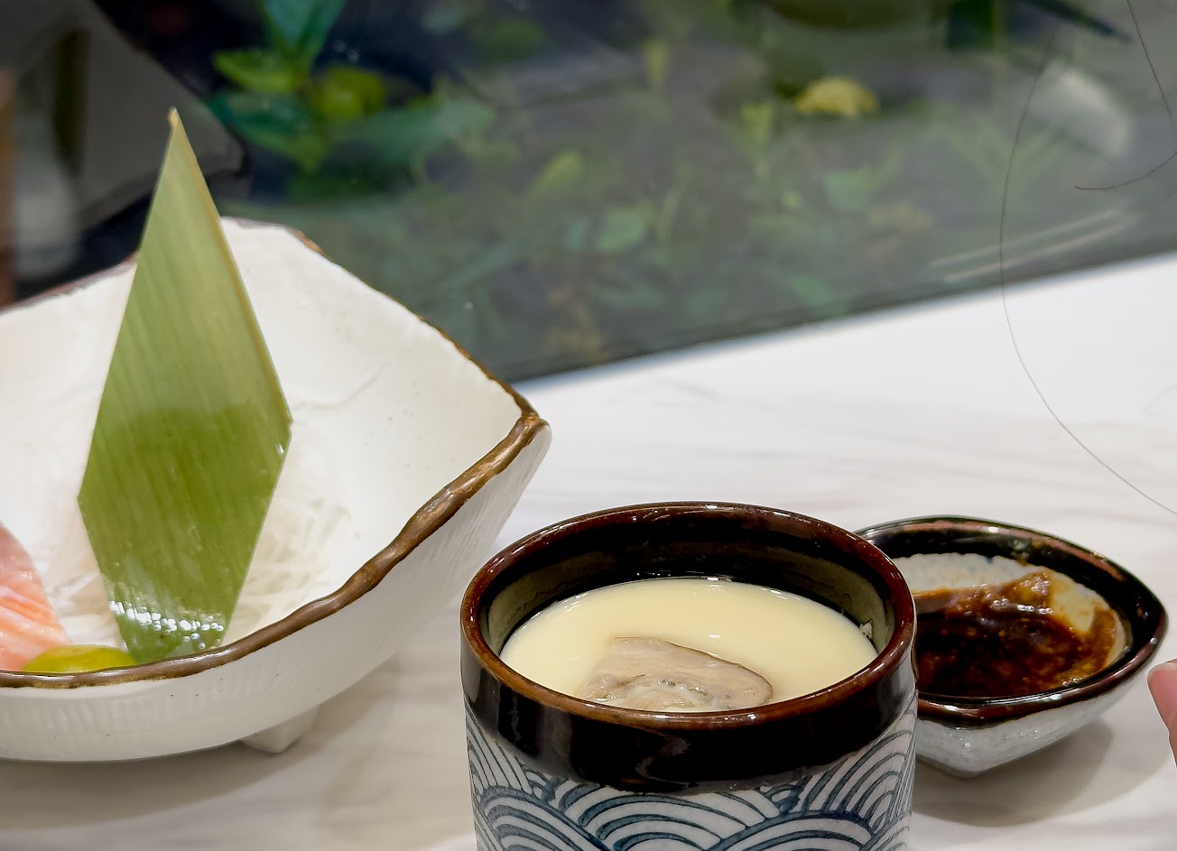 或茶碗蒸偏乾,生魚片好幾片有帶筋的