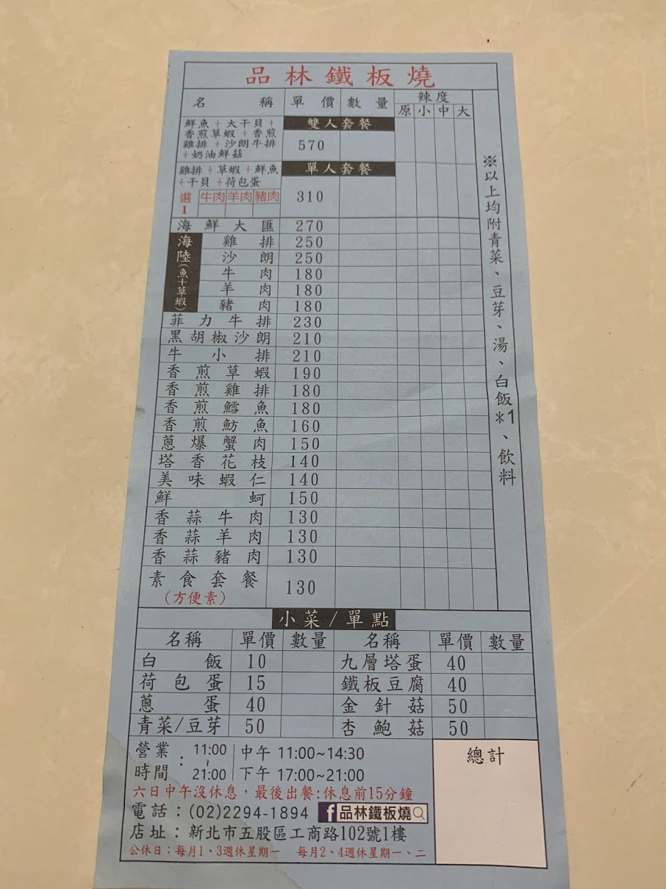 2024最新在地推薦餐廳的菜單_品林鐵板燒的菜單、圖片